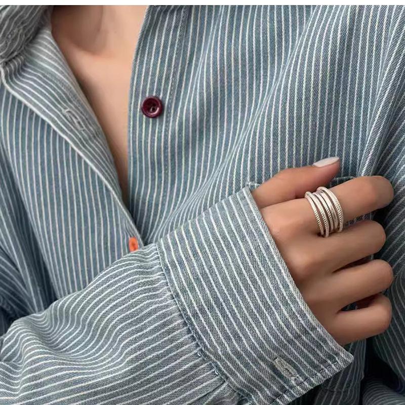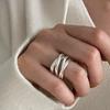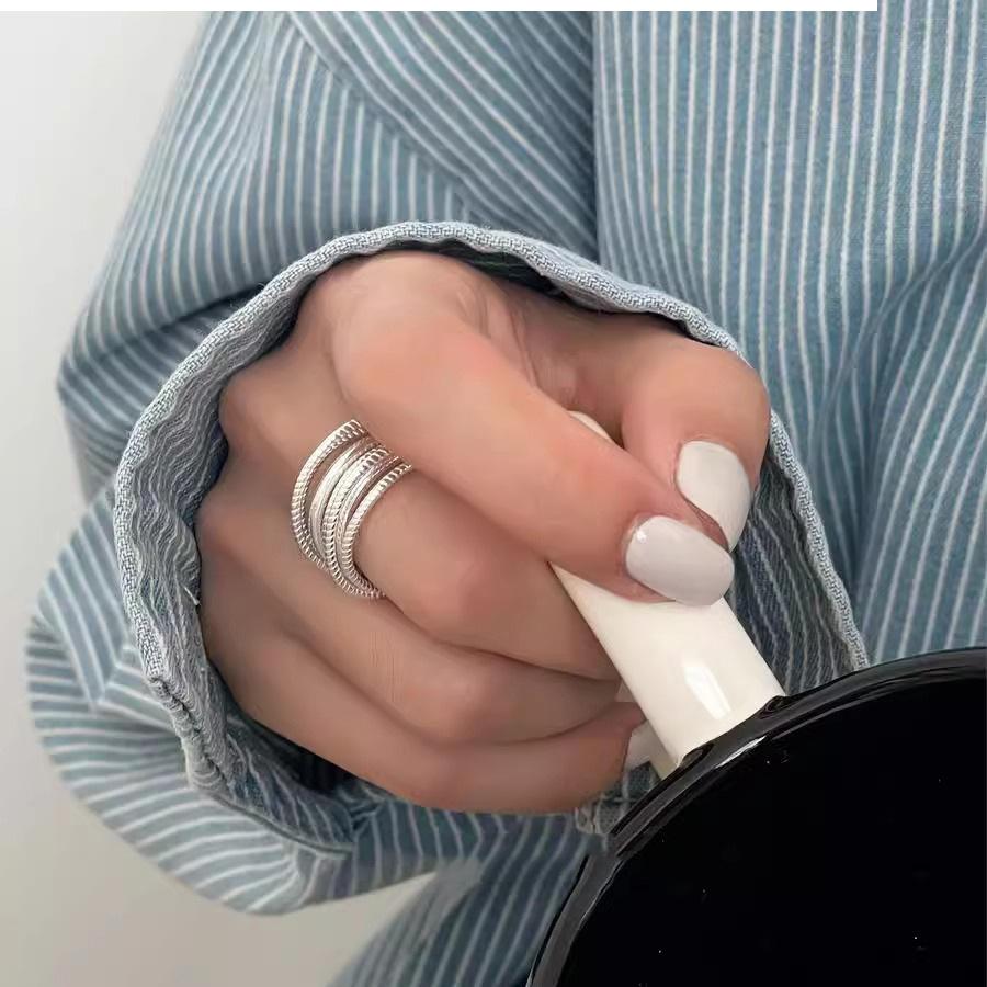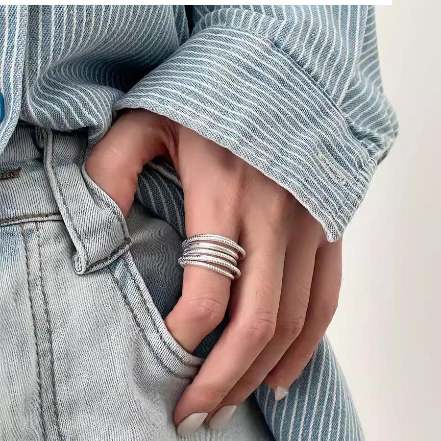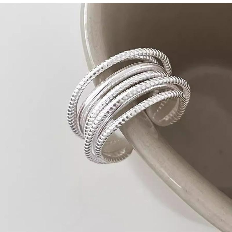 Multi-layer thread smooth ring, Pair of cross multi-layer silver ring, Geometric Hollow Ring, Hollow flower si...