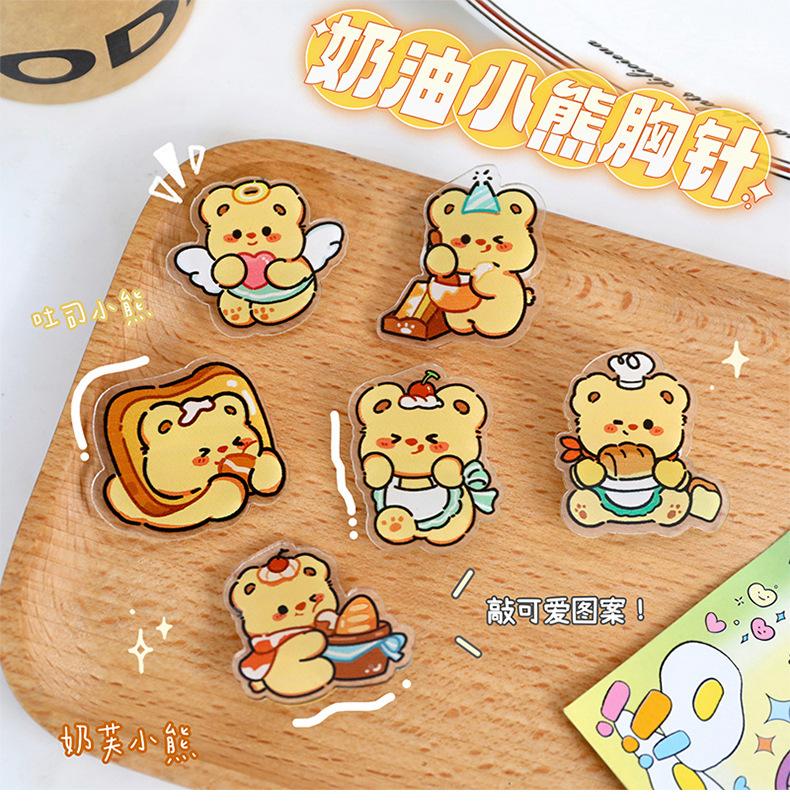 Angel bear-brooch, Soft cute bear-brooch, Milk fu bear-brooch, Baked bear-brooch, Cream bear-brooch, Toast bear-brooch