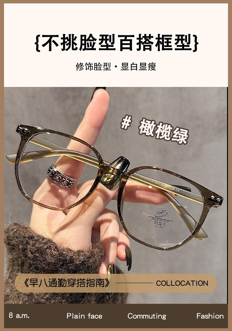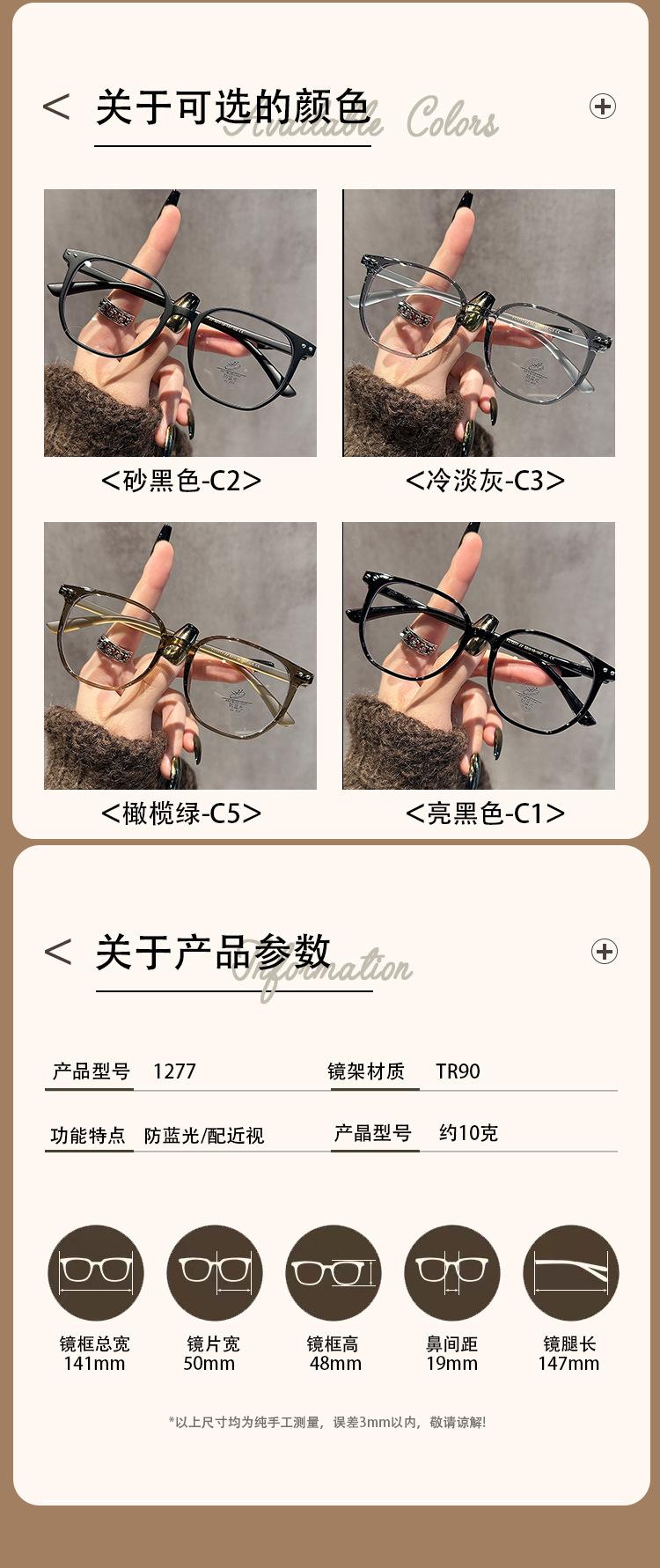 1277 montura grande para gafas de miopía TR coreanas para hombres y mujeres, venta al por mayor, ligeras, minimalistas, blancas, verde oliva, con espejo liso