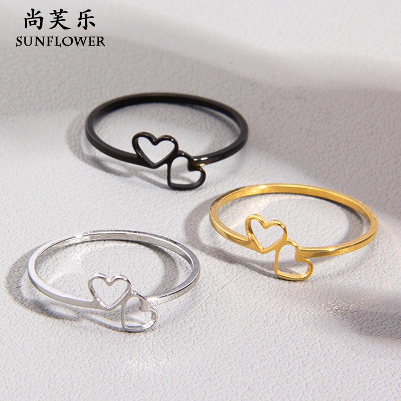 Anillo de Acero Inoxidable de Moda Simple Hueco de Amor de Acero de Titanio de Venta Caliente Transfronterizo Diseño Nicho de Lujo Joyería de Mano para Mujer