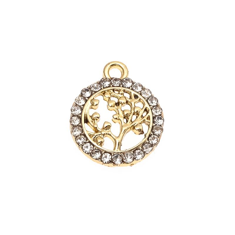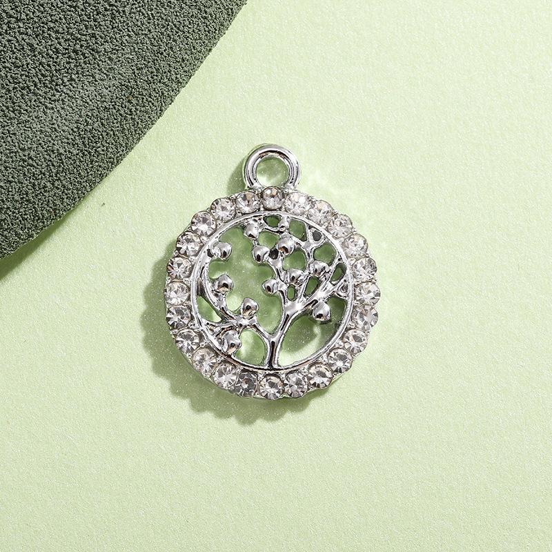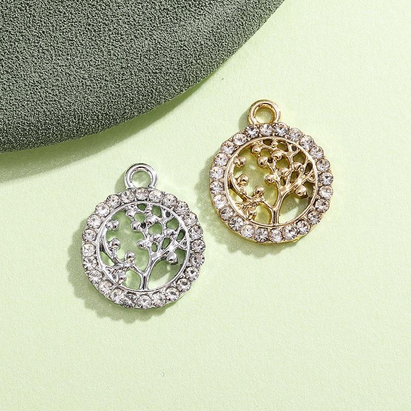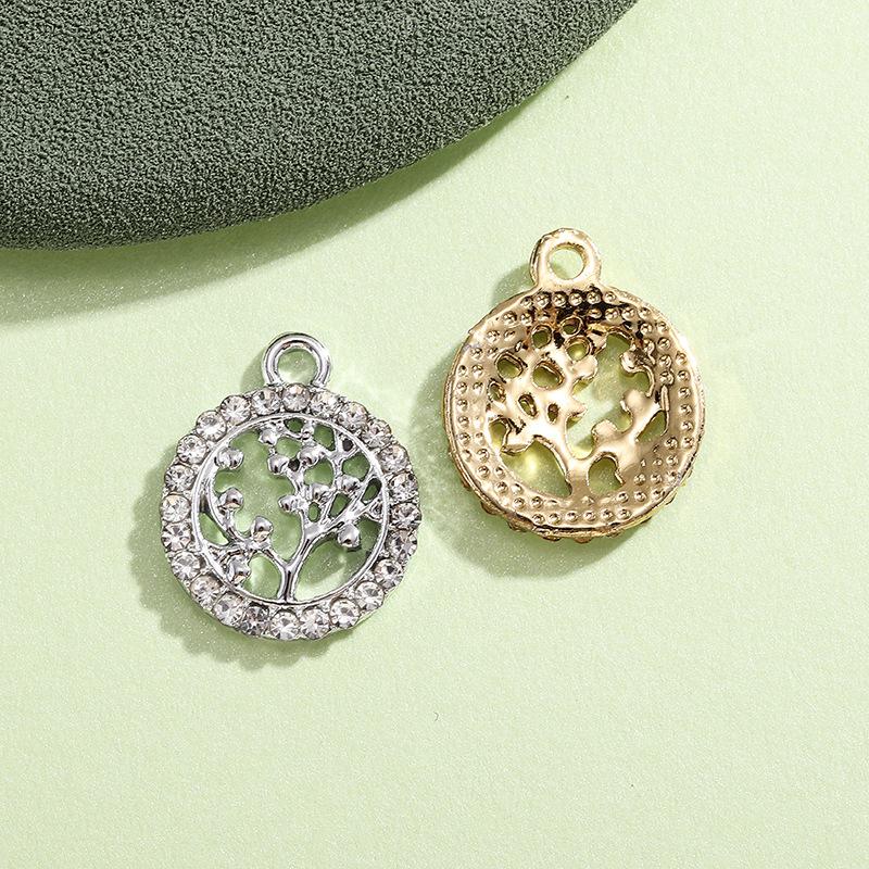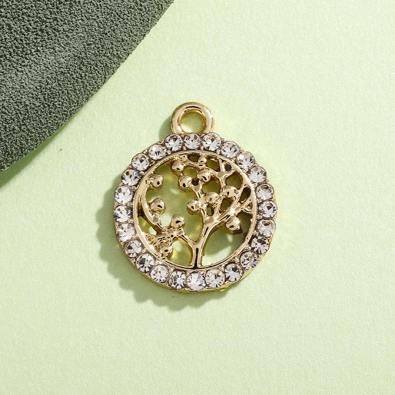 Redondo Marco Grande de Árbol Accesorios Colgante Colgante Pequeño Estilo Europeo y Americano Diamante Aleación Accesorios DIY Aretes Pulsera Collar Ropa