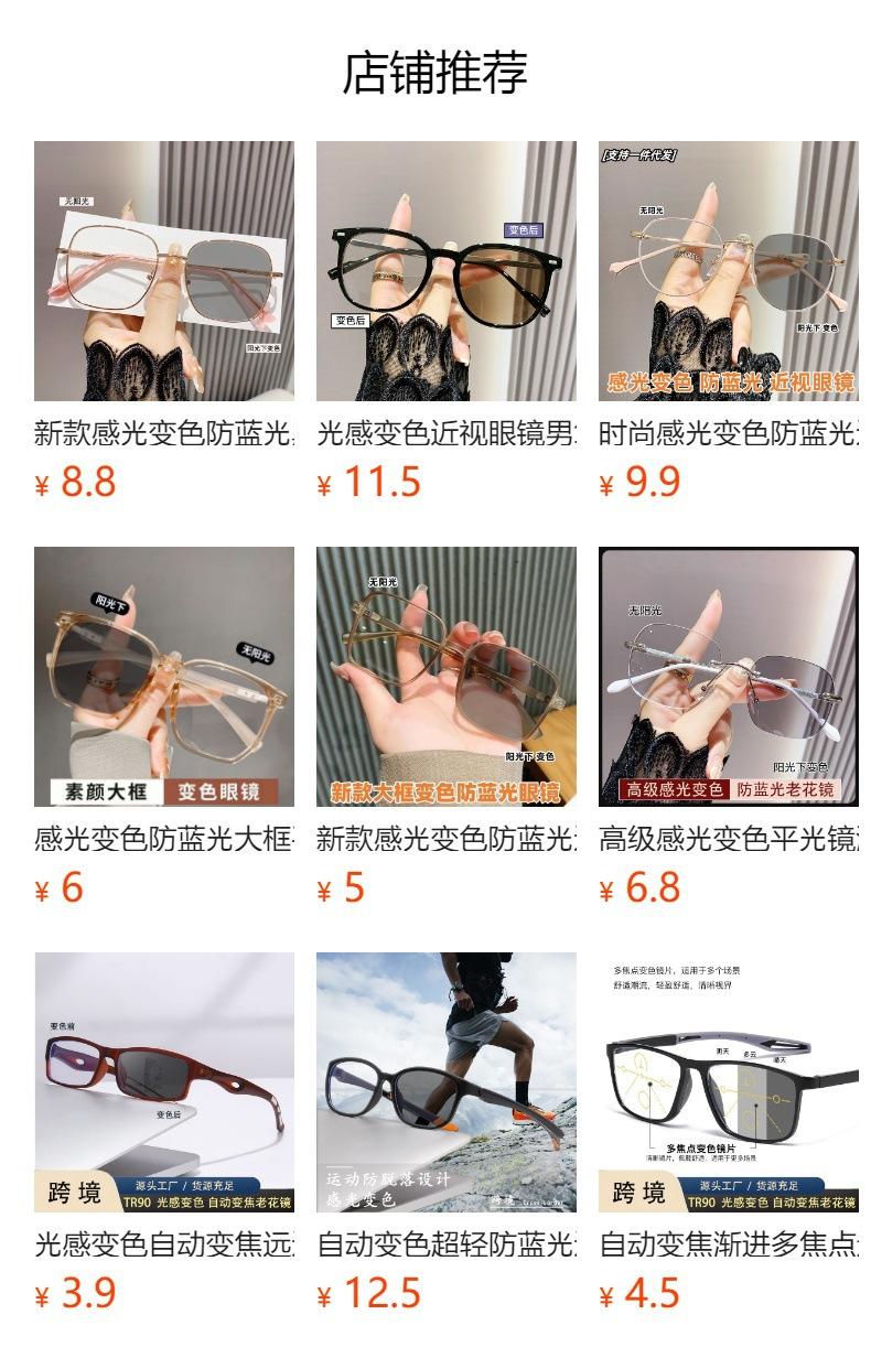 Anteojos miopes fotosensibles que cambian de color, montura de metal anti-luz azul, moda transfronteriza para hombres y mujeres, anteojos miopes de montura completa