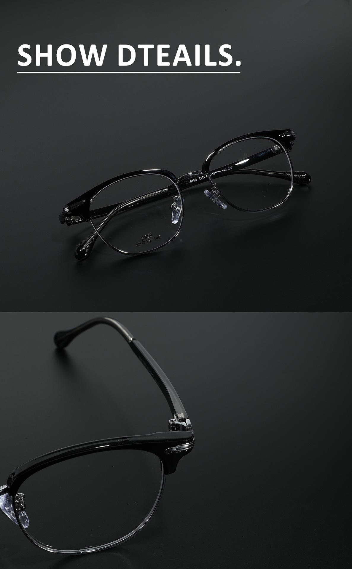 Lentes Xunge Estilo Japonés Retro Montura de Lentes Miopía Arte Lentes Planas para Hombre TR90 Metal Remache Lentes Lisos para Mujer