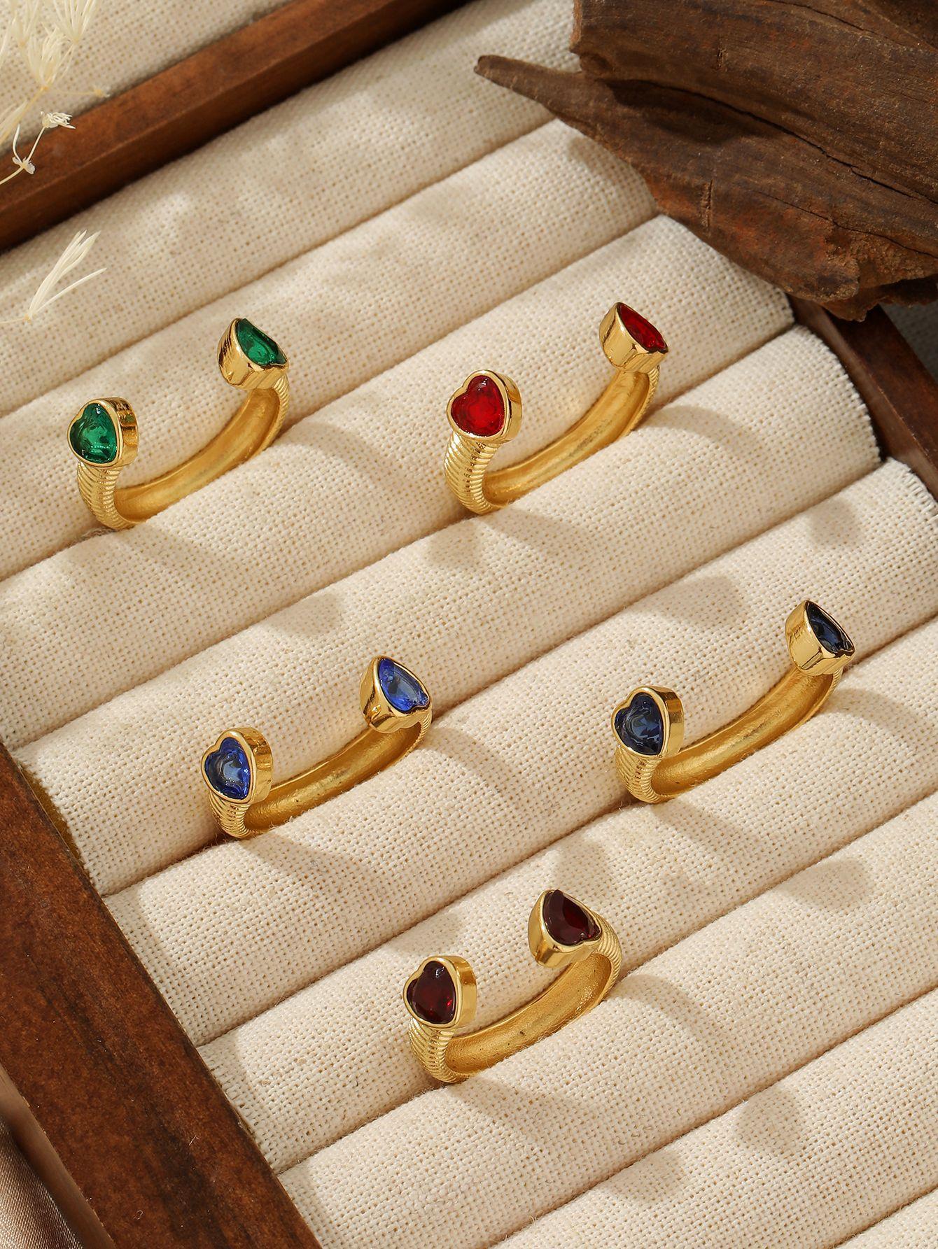 Anillo de Circonita Colorida de Acero Inoxidable Estilo Europeo y Americano de Verano, Anillo Ajustable Vintage, Modelo para Mujer de Acero de Titanio 18K de Moda