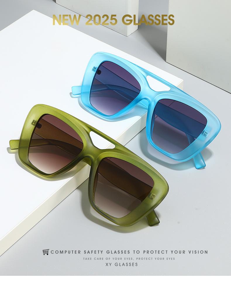 Gafas de sol de doble haz transfronterizas de moda 2025, nuevas gafas de sol anti-ultravioleta UV400 con textura y montura grande.