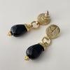 Pendientes personalizados estilo gota de agua francesa con textura de moda negra dorada estilo retro europeo y americano
