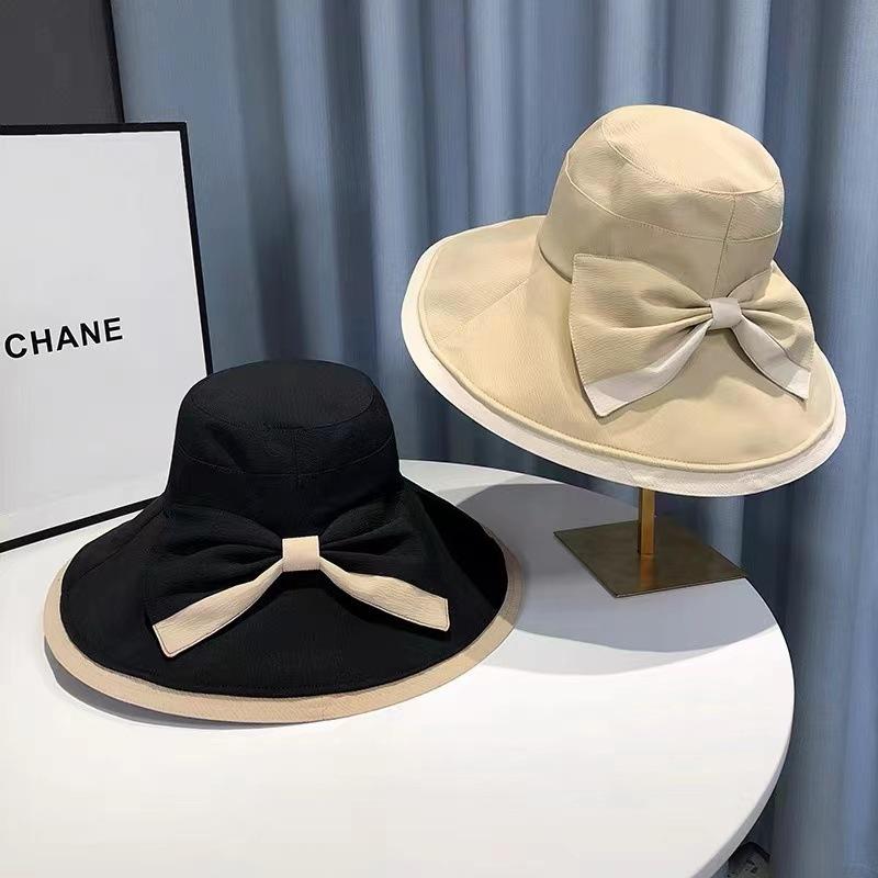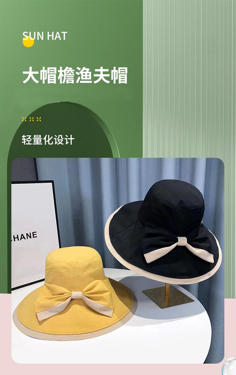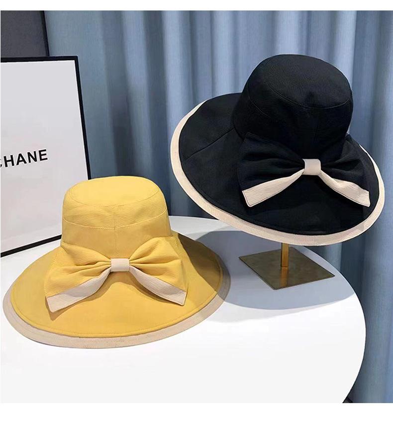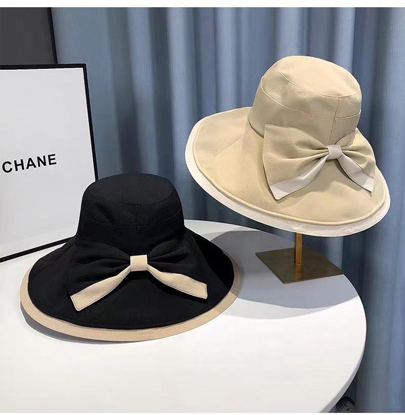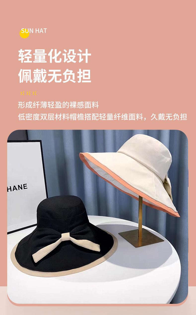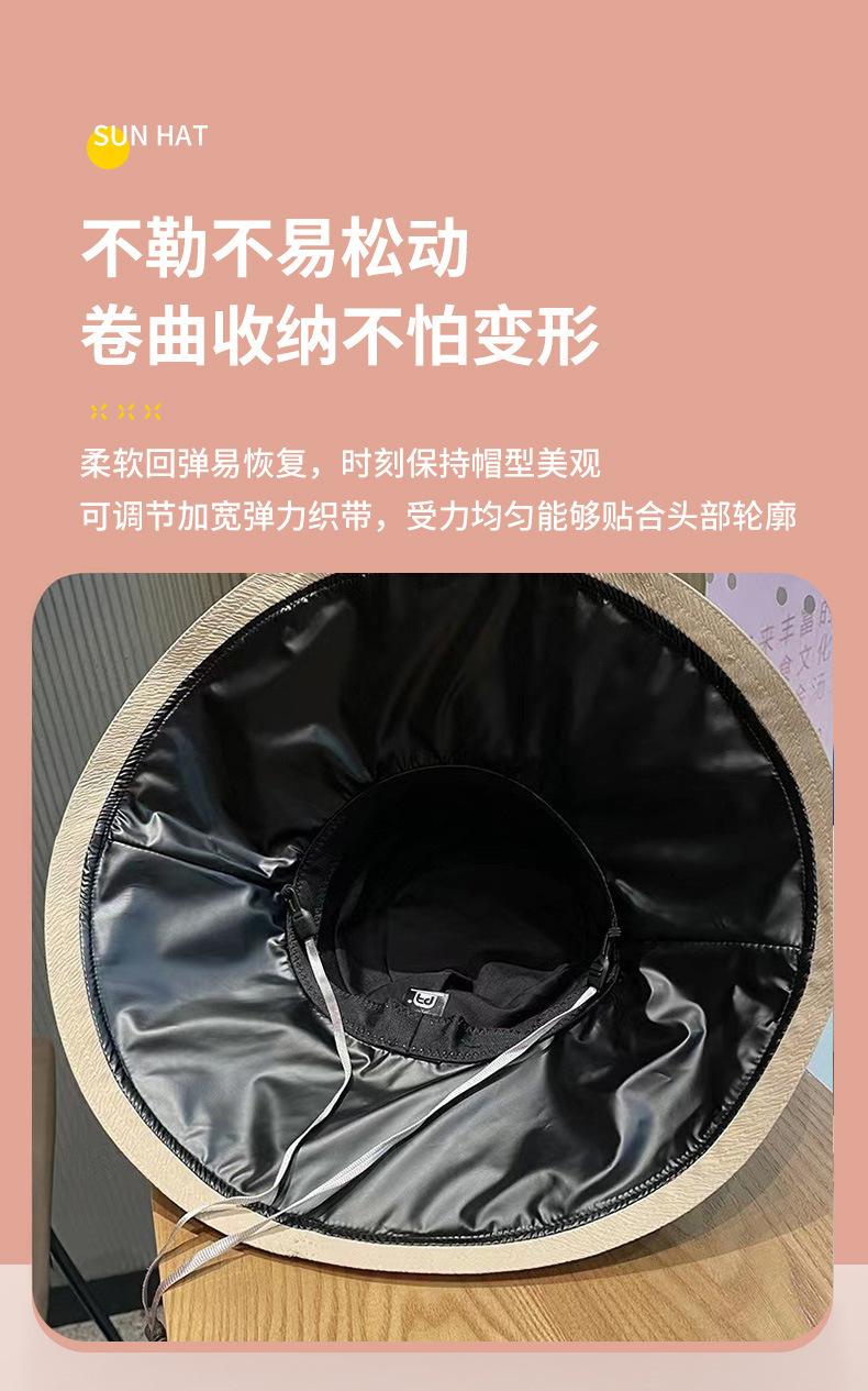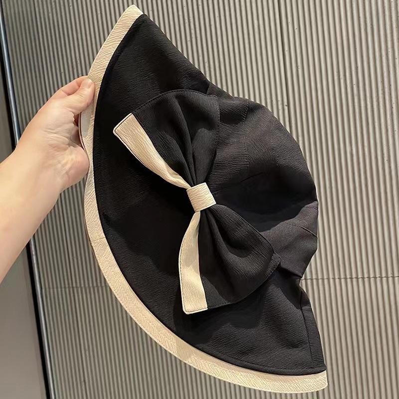 Sombrero de Pescador de Ala Ancha con Lazo para Mujer Nuevo Sombrero Negro de Goma con Protección Solar Plegable Moda Sombrero para el Sol Sombrero para el Sol