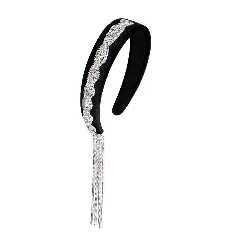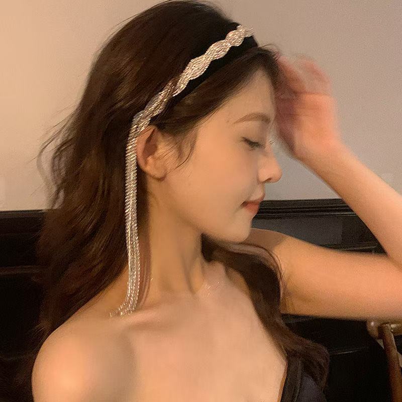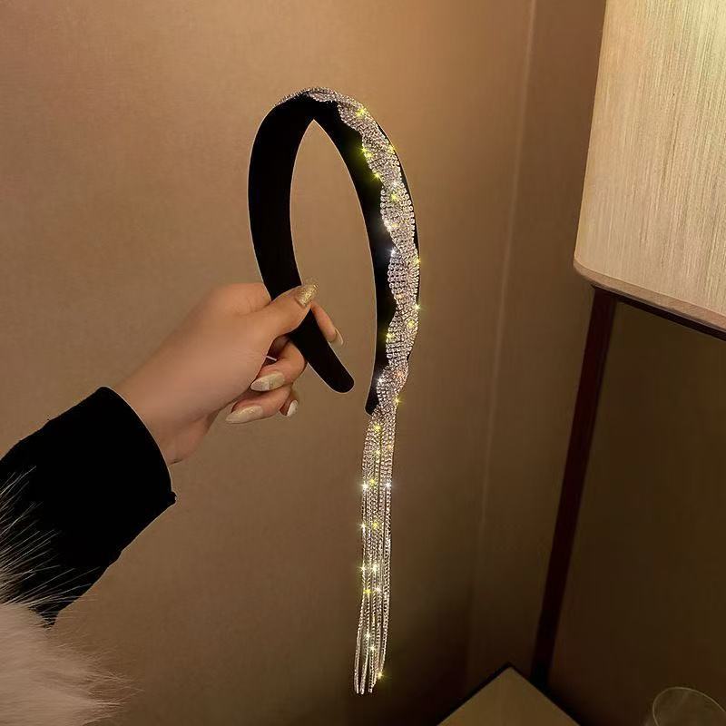 Diadema exagerada con borlas de diamantes y destellos largos de estilo europeo y americano para mujer, horquilla para el pelo, diadema de celebridades de Internet, accesorios para el cabello que combinan con todo y con personalidad.