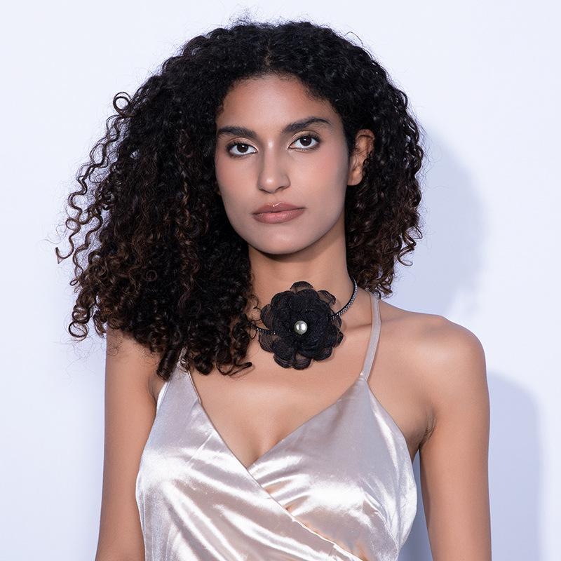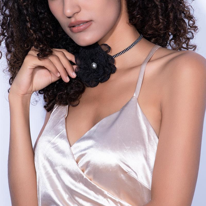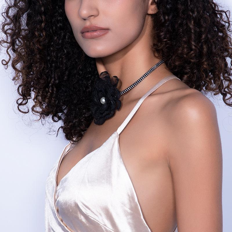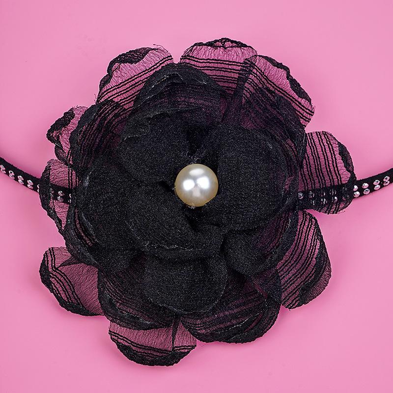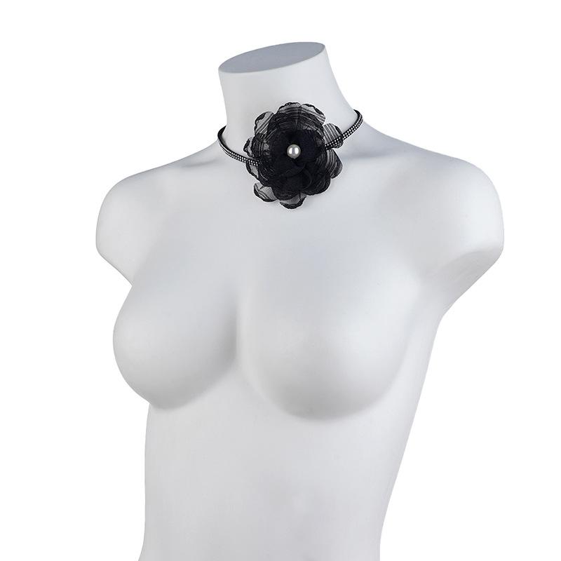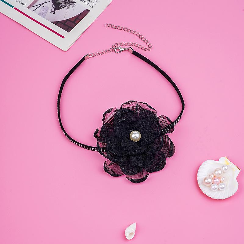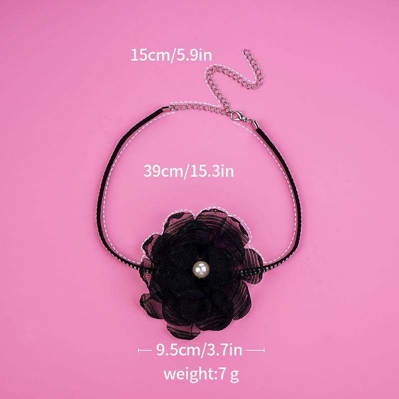 Collar con cadena y correa para el cuello, estilo europeo y americano, con encaje de rosas negras y perlas, para mujer