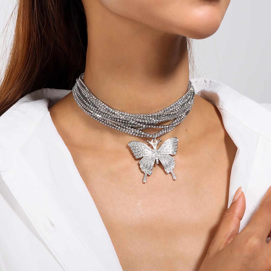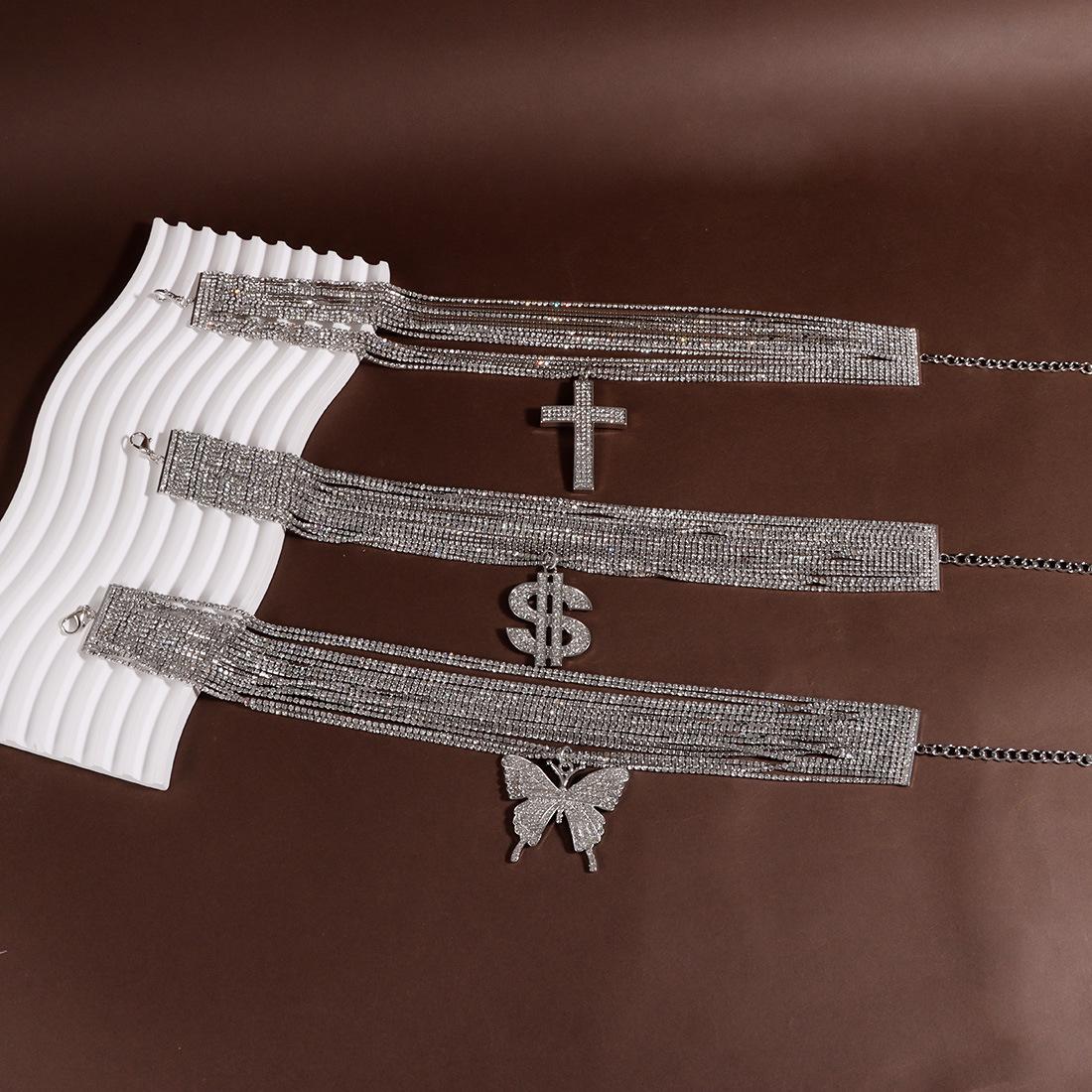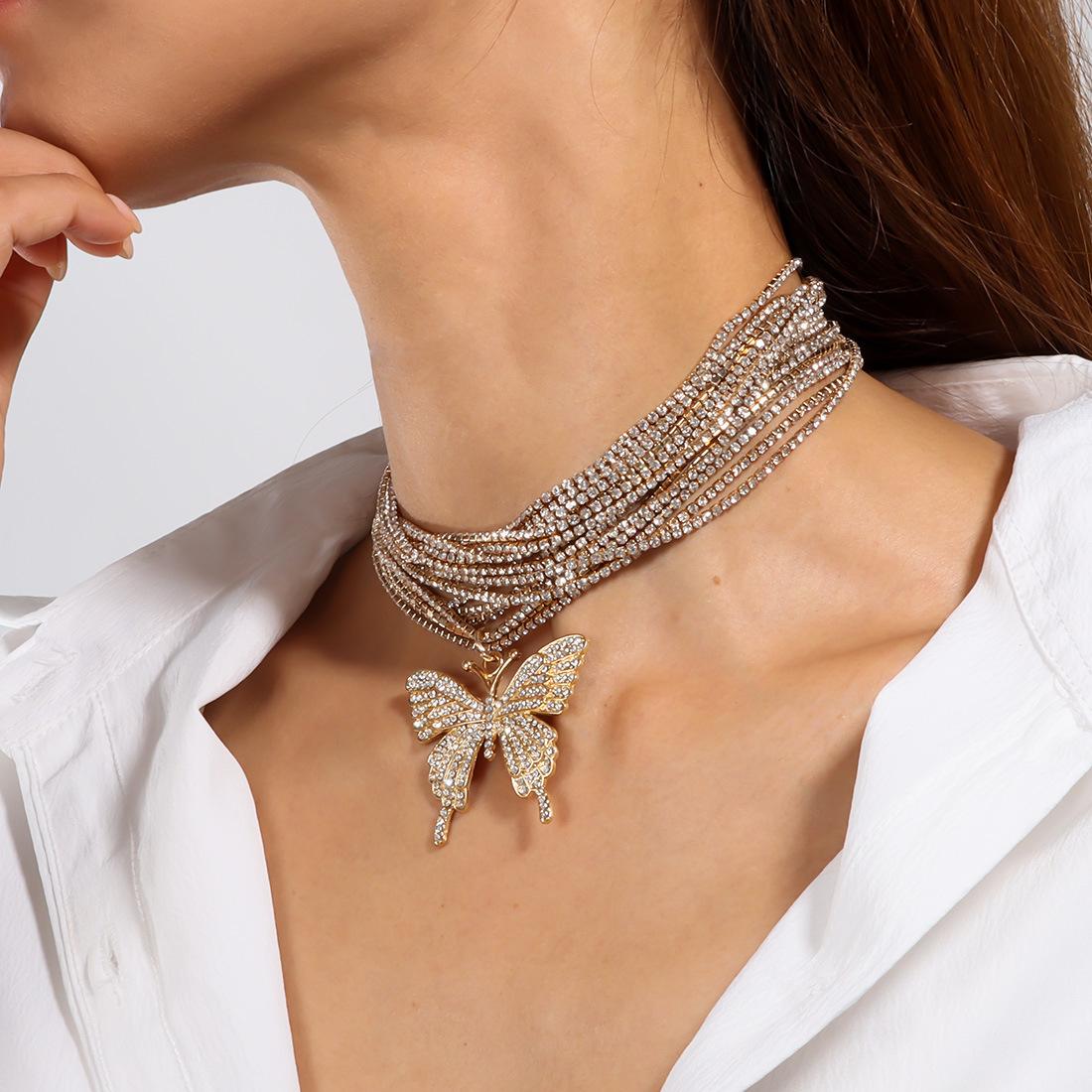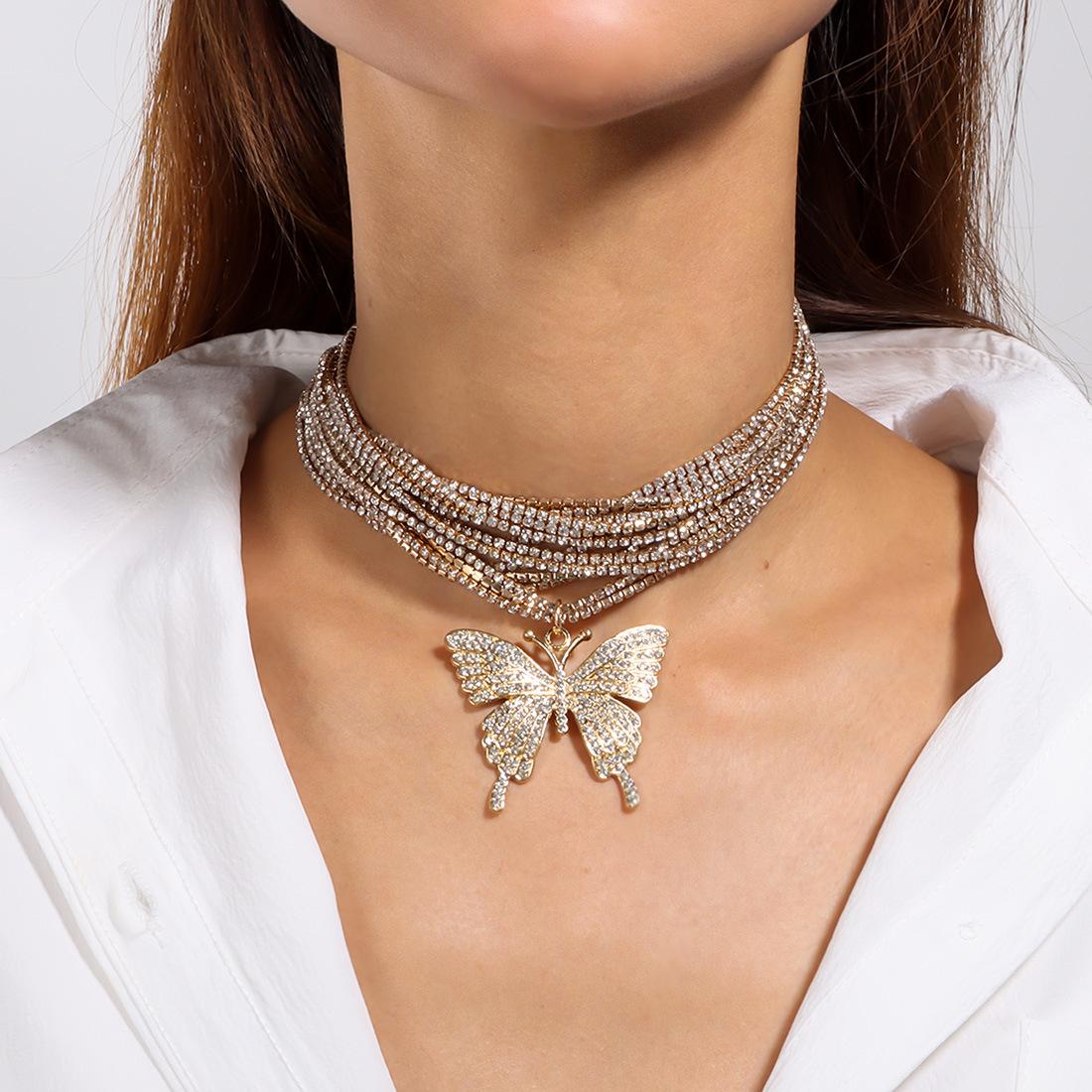 Joyería Popular Transfronteriza Europea y Americana Colgante de Cruz de Mariposa Sensación de Alta Gama Diamante Completo Collar Multicapa NK27490
