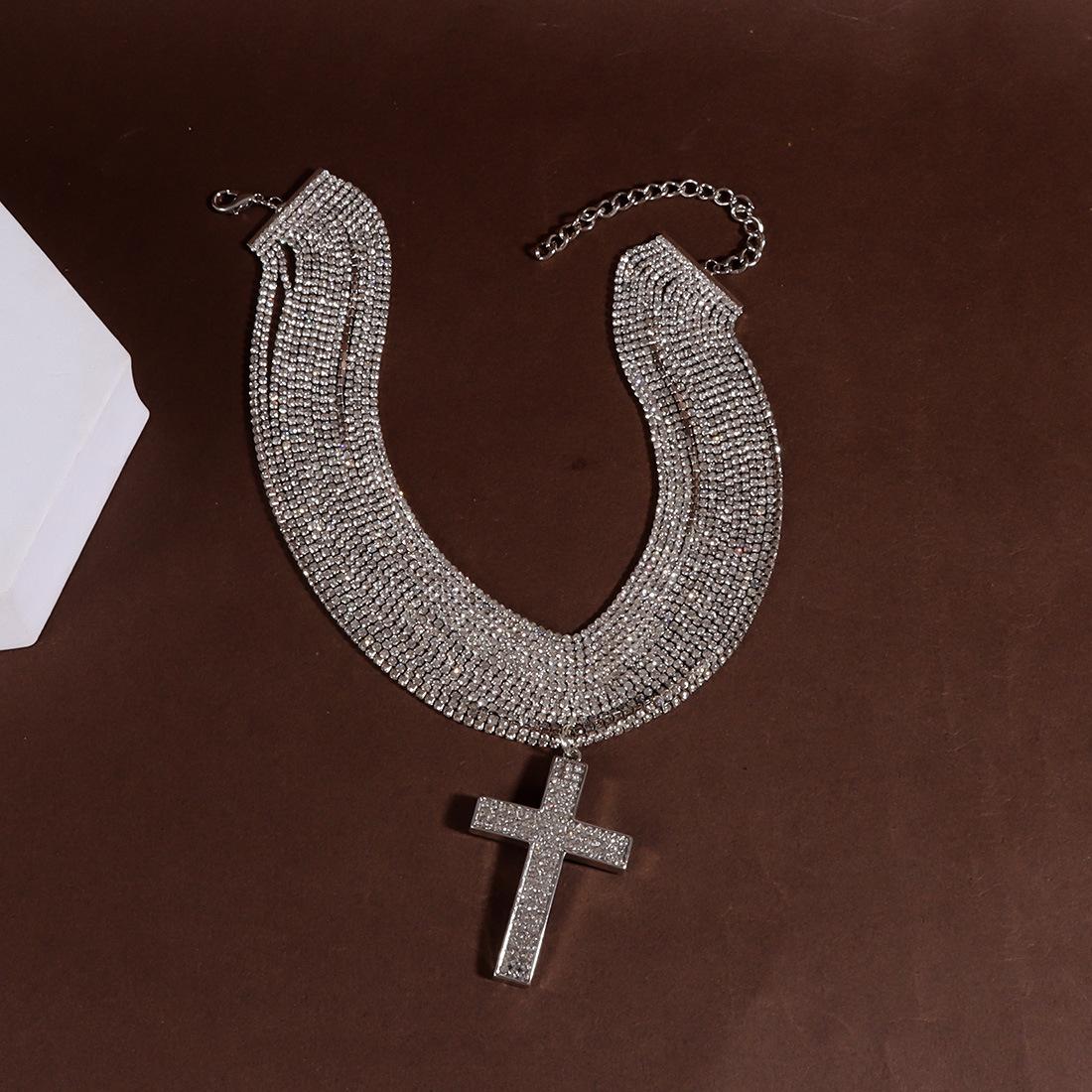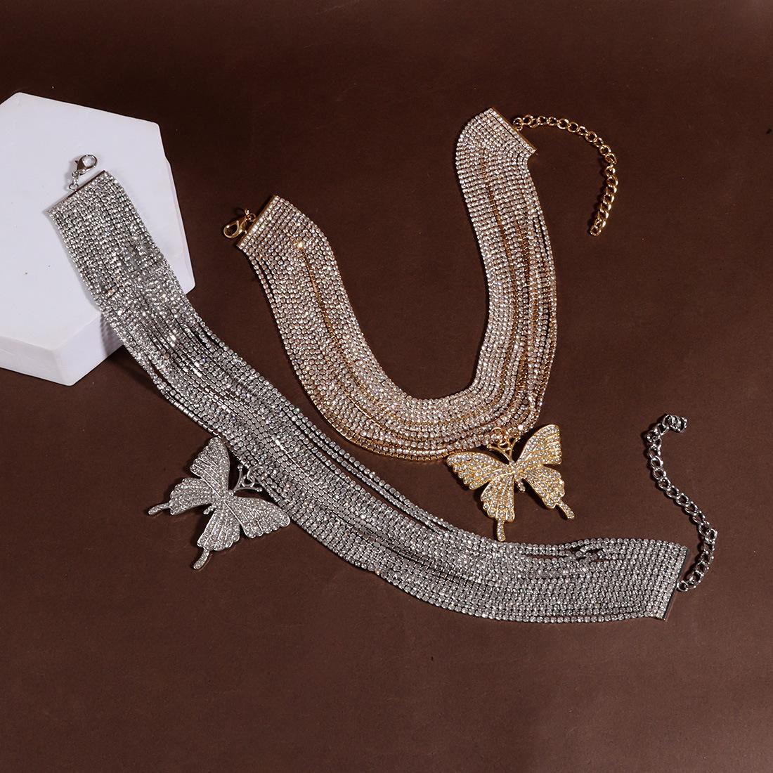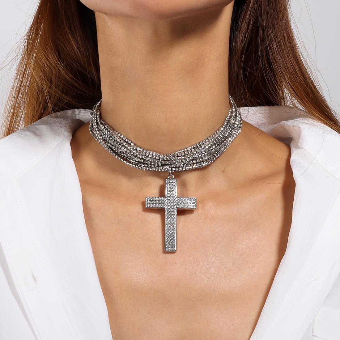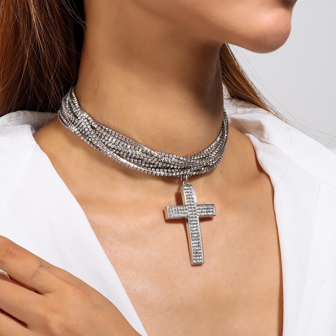 Joyería Popular Transfronteriza Europea y Americana Colgante de Cruz de Mariposa Sensación de Alta Gama Diamante Completo Collar Multicapa NK27490