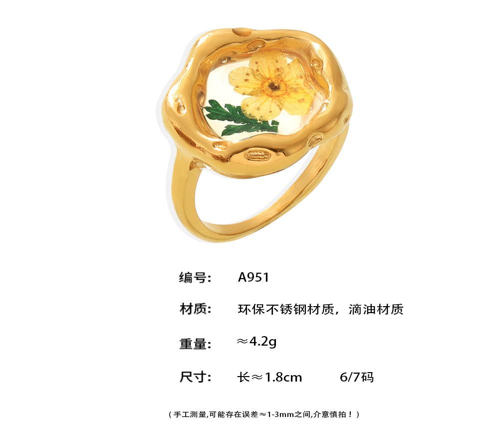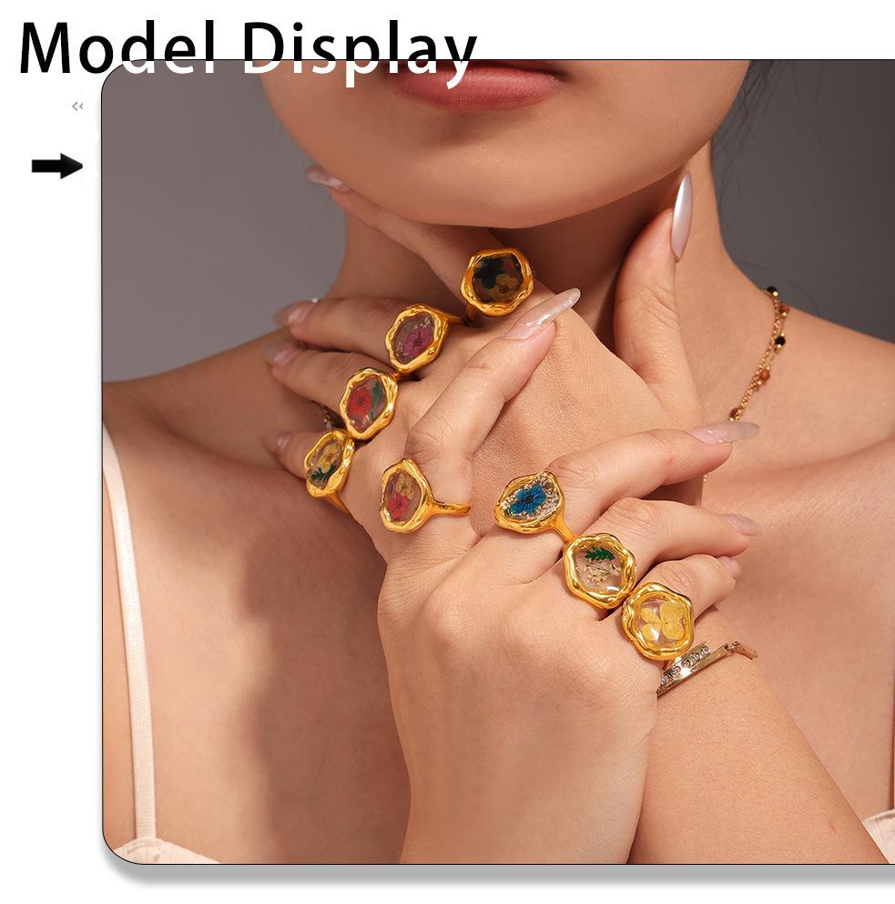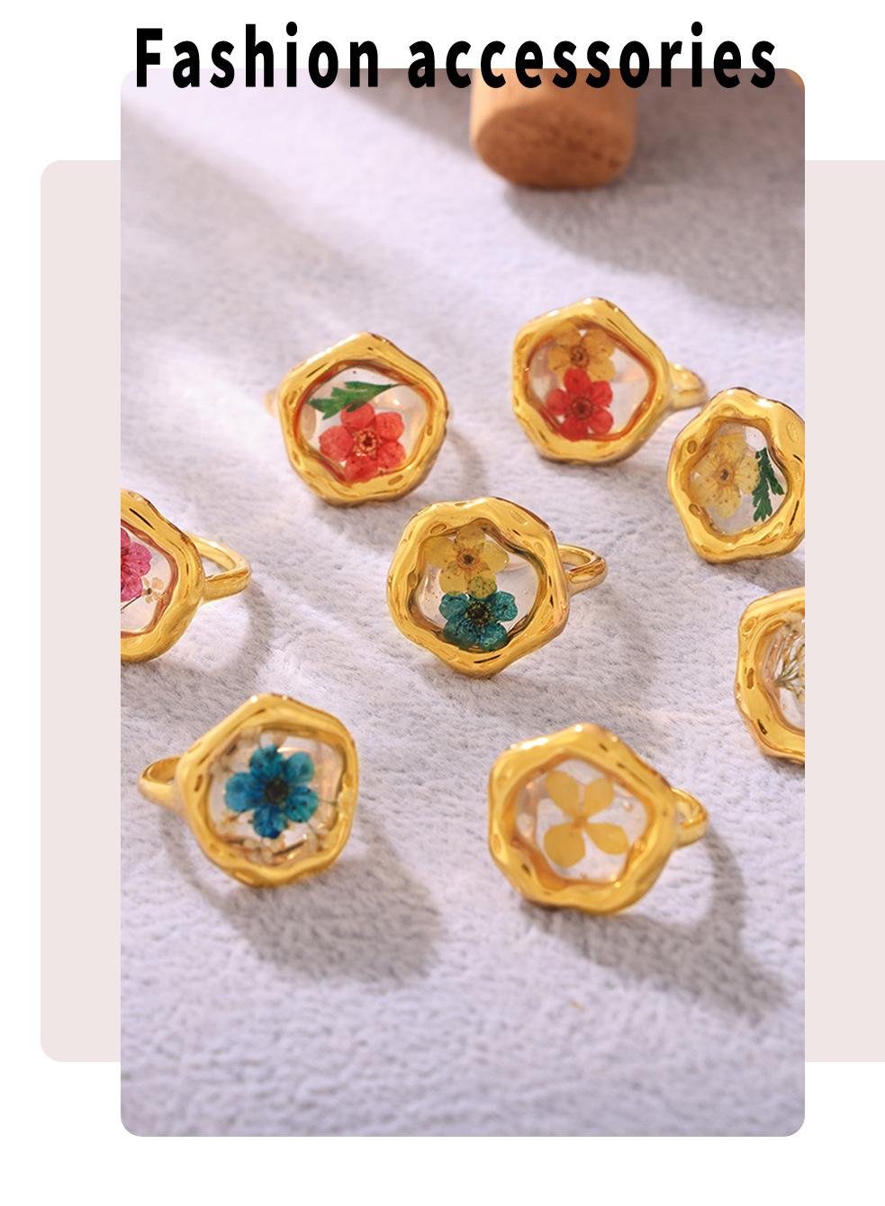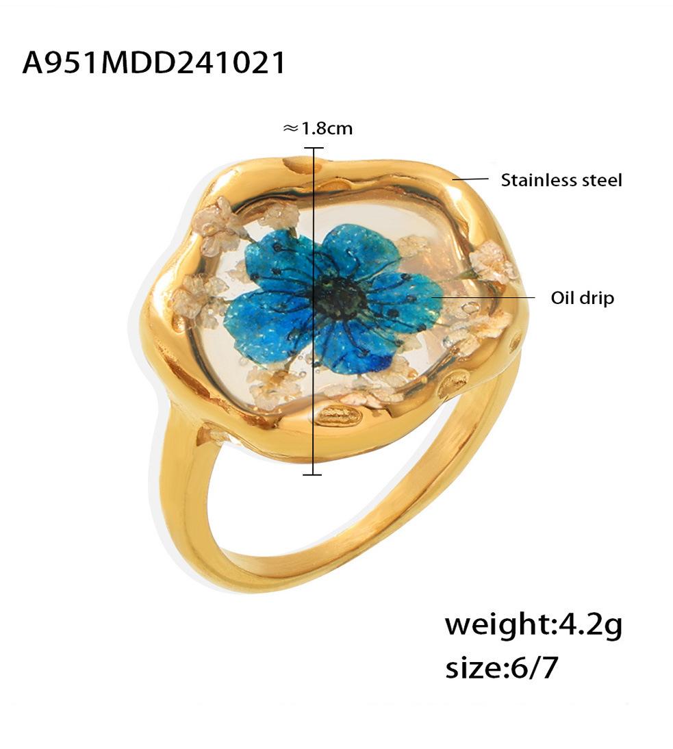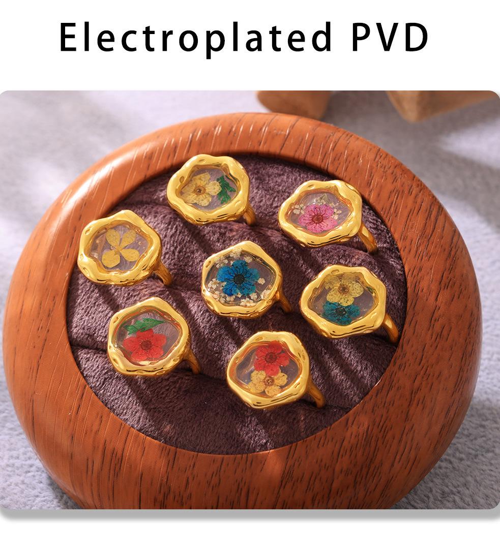 Xinyi Xinmei Anillo de Luz de Flor Seca con Gota de Aceite Xiaozhong Lujo Viento Frío Planta Flor Acero Inoxidable Anillo de Dedo para Mujer