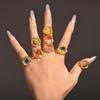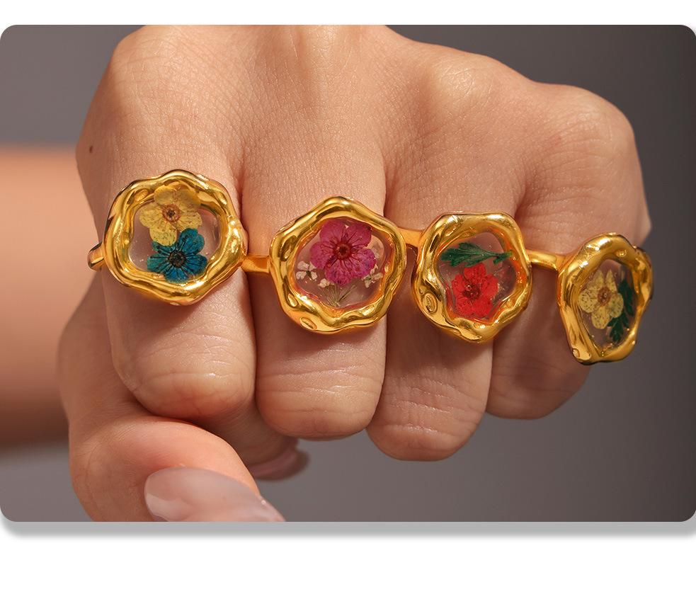 A951-Golden Yellow Flower Ring, A951-Gold Blue Flower Ring, A951-Golden Red Yellow Flower Ring, A951-Golden fo...
