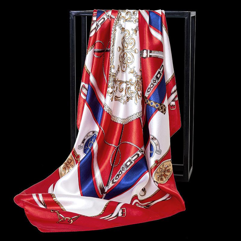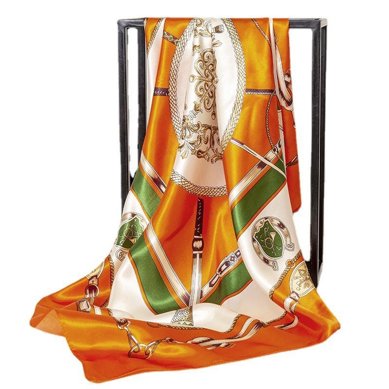 Europa y Estados Unidos primavera nueva seda de imitación impresión a 90 colores pequeñas nueces de anacardo bufanda generosa al por mayor bufanda de moda para mujer