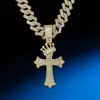 Suministro Transfronterizo del Fabricante de Colgante de Cruz Corona Completa de Diamantes, Joyería de Collar Cubano con Incrustaciones de Diamantes de Aleación con Galvanoplastia Ecológica para Hombres