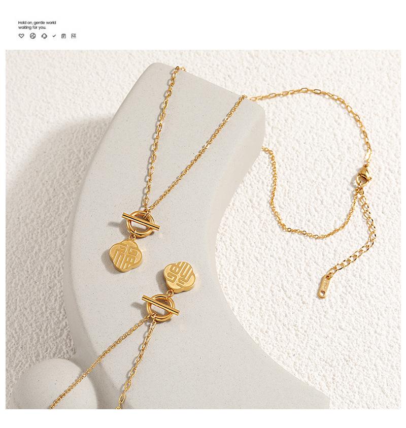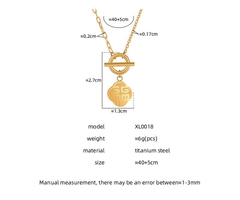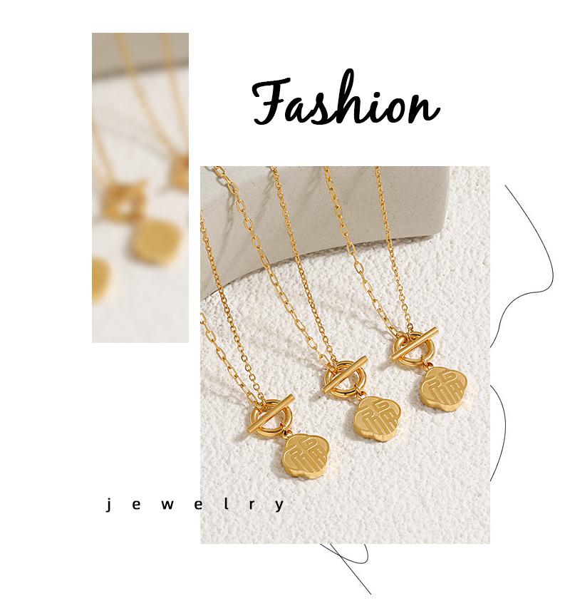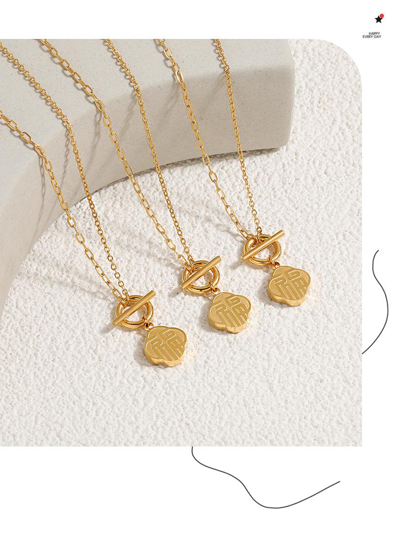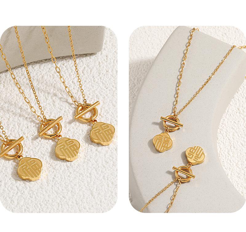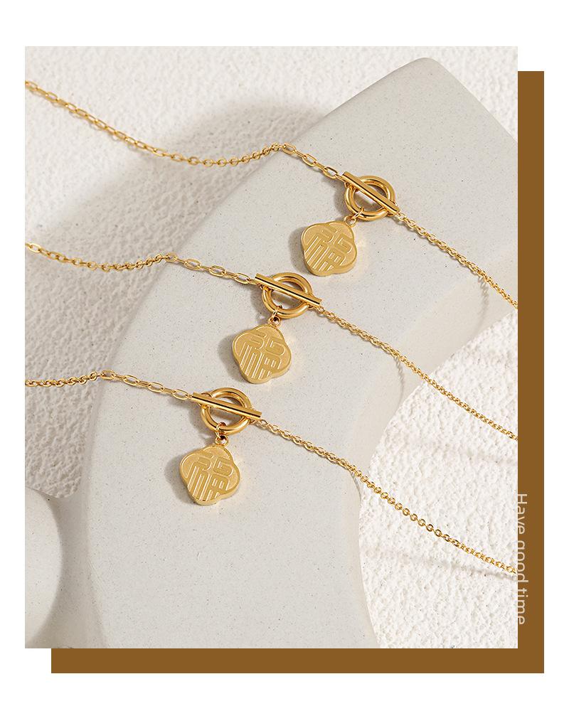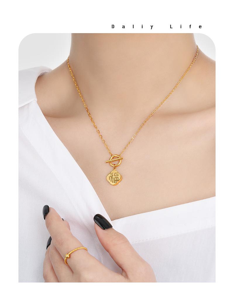 Nuevo collar con hebilla de acero de titanio chapado en oro con personalidad de moda nacional china, nuevo y sencillo, con carácter fu de nicho, para mujer.