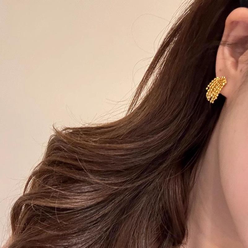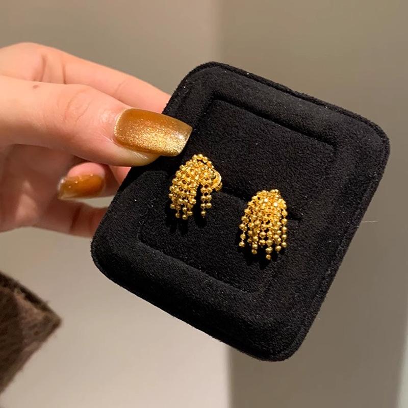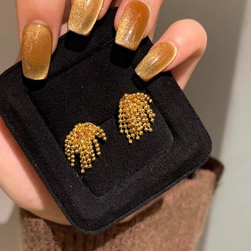 Pendientes con borlas de fuegos artificiales dorados y resonantes, exquisitos, ligeros, de lujo, de alta gama, sencillos y elegantes con abrigo para mujer.