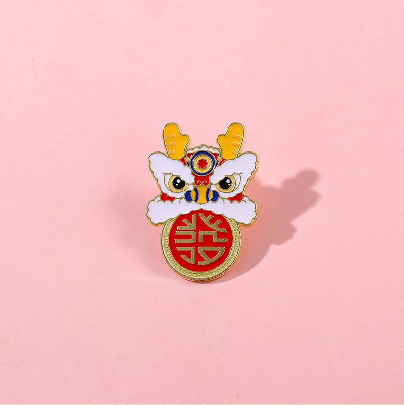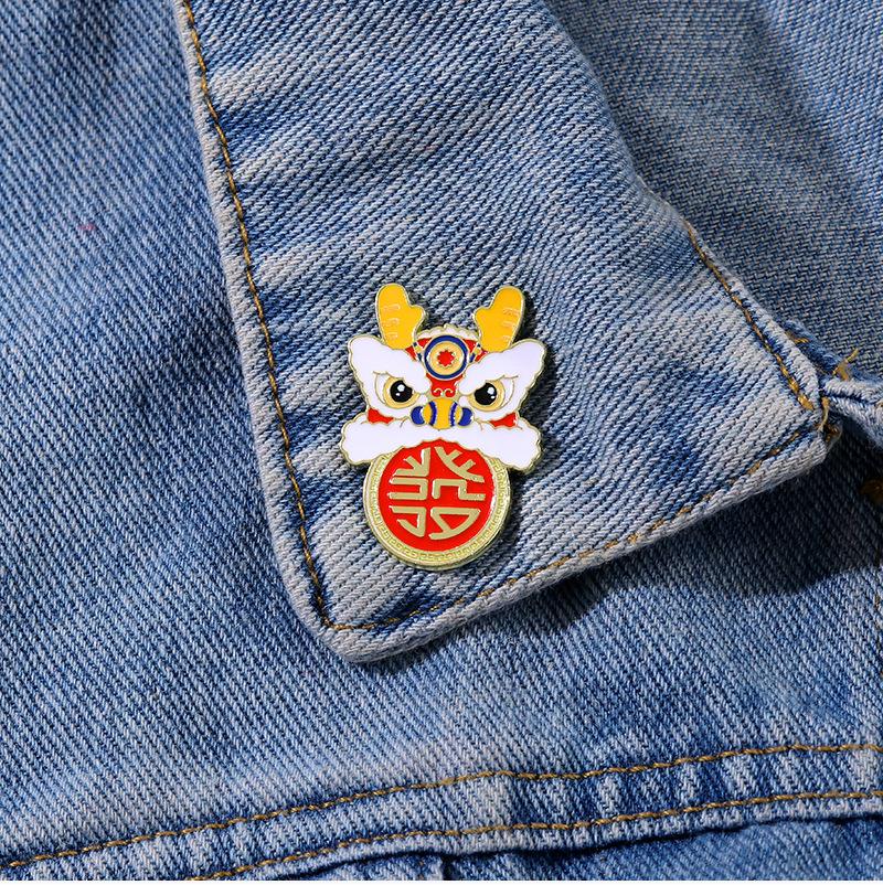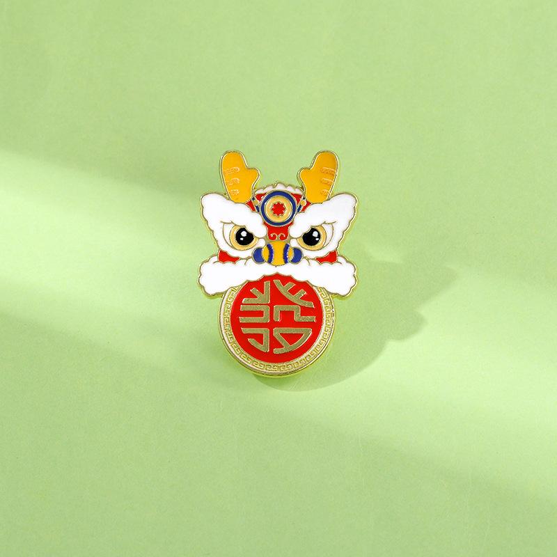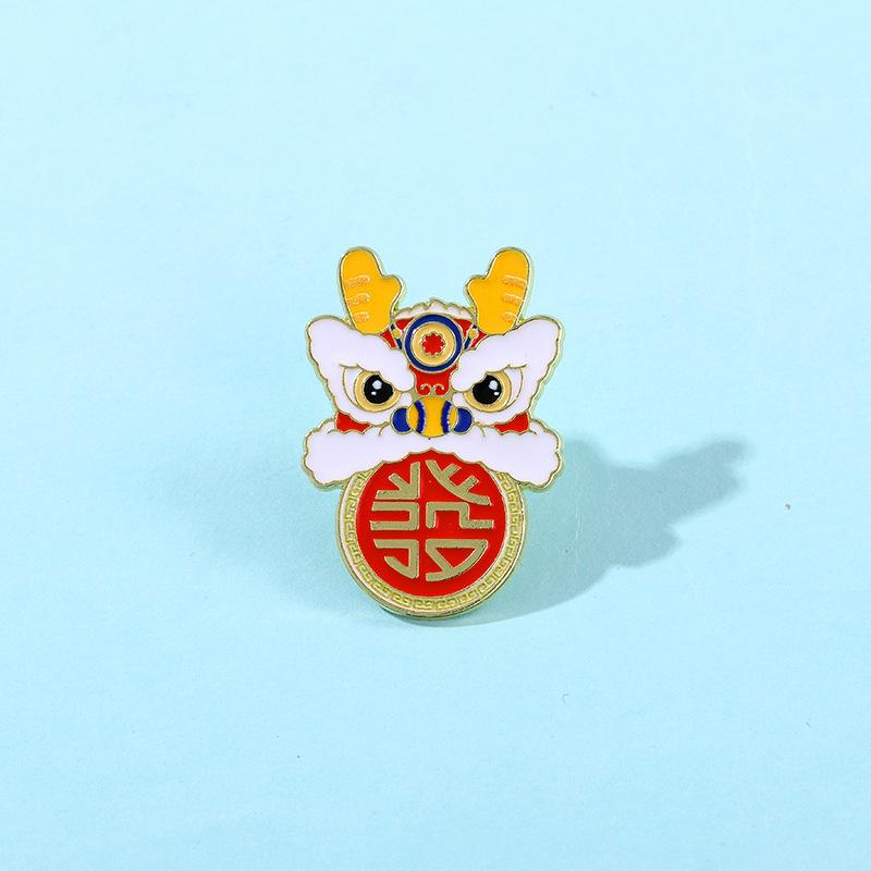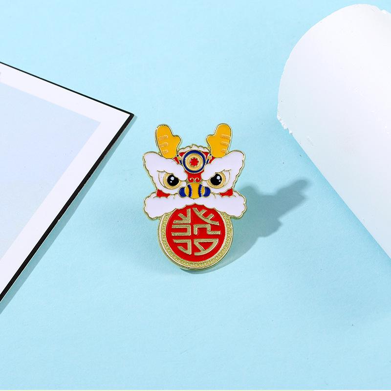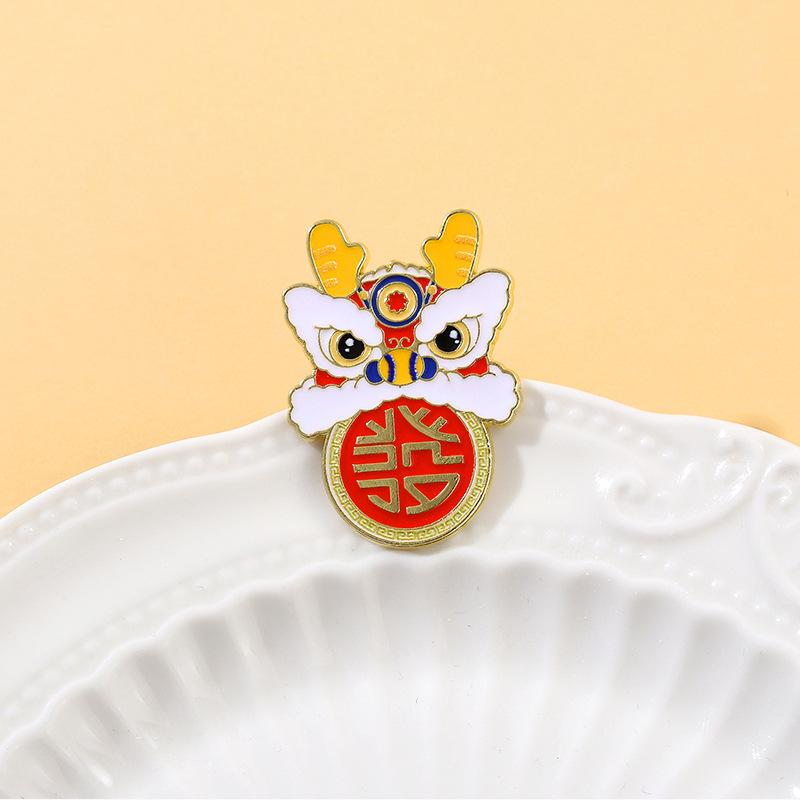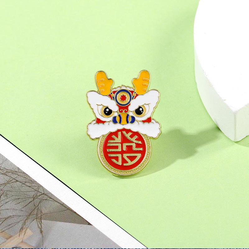 Broche Danza del León Estilo Chino Regalo Año Nuevo Accesorios Traje Moda Nacional Moda Insignia de Dibujos Animados Linda Aleación de Zinc