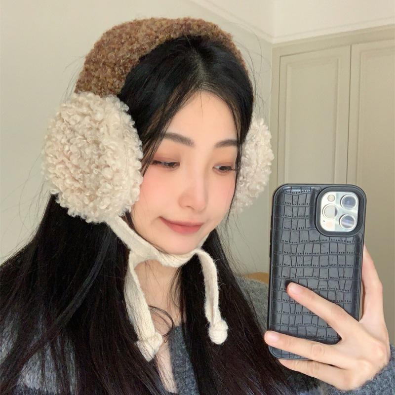 Orejeras para Mujer Nuevo Otoño e Invierno Terciopelo Teddy Combinación de Colores Fácil Almacenamiento Felpa Cálida Protección para las Orejas Cubreorejas Exterior a Prueba de Frío Bolsa para Orejas para Hombre