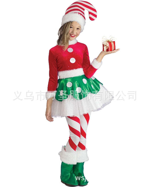 Nuevo disfraz de elfo navideño para niños, disfraz de Navidad para mujer, estilo transfronterizo