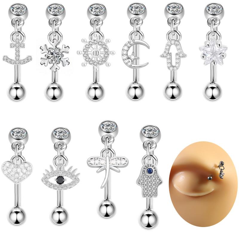 Anillo de acero inoxidable con forma de estrella de cinco puntas para cejas, piercing para el oído, para mujer, estilo nicho de moda, para labio, oreja y ceja