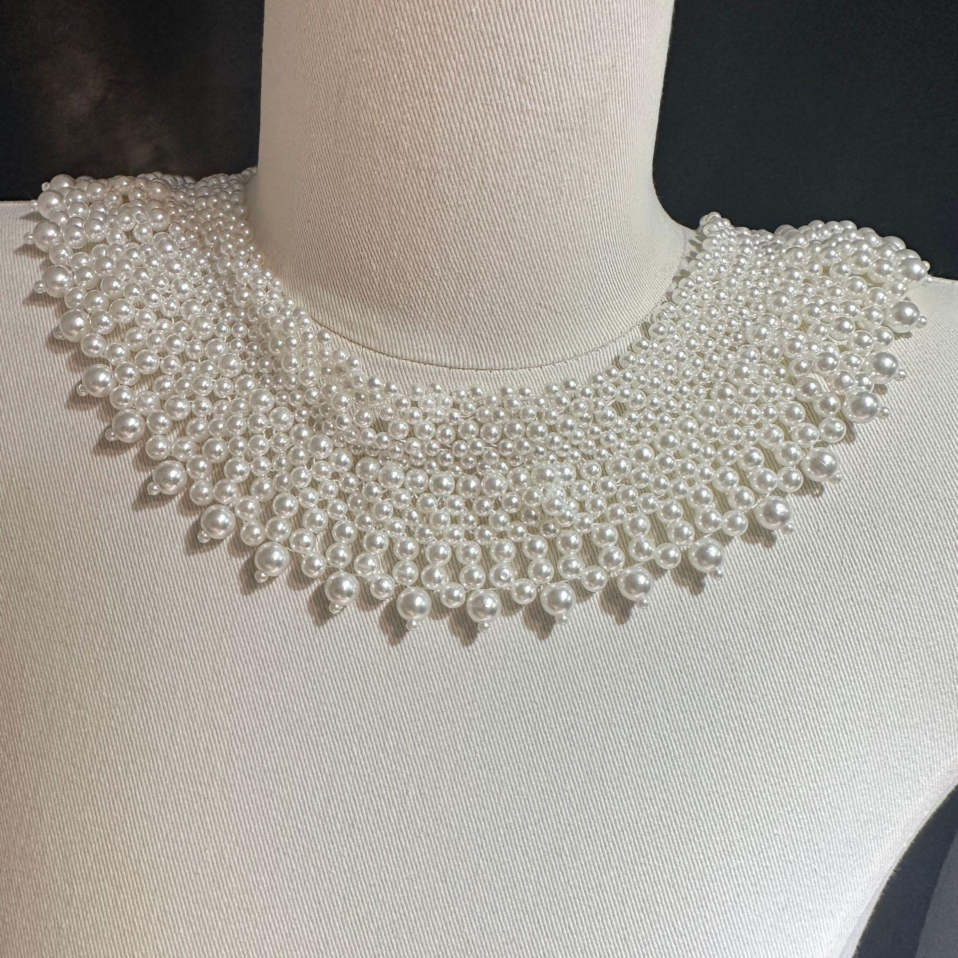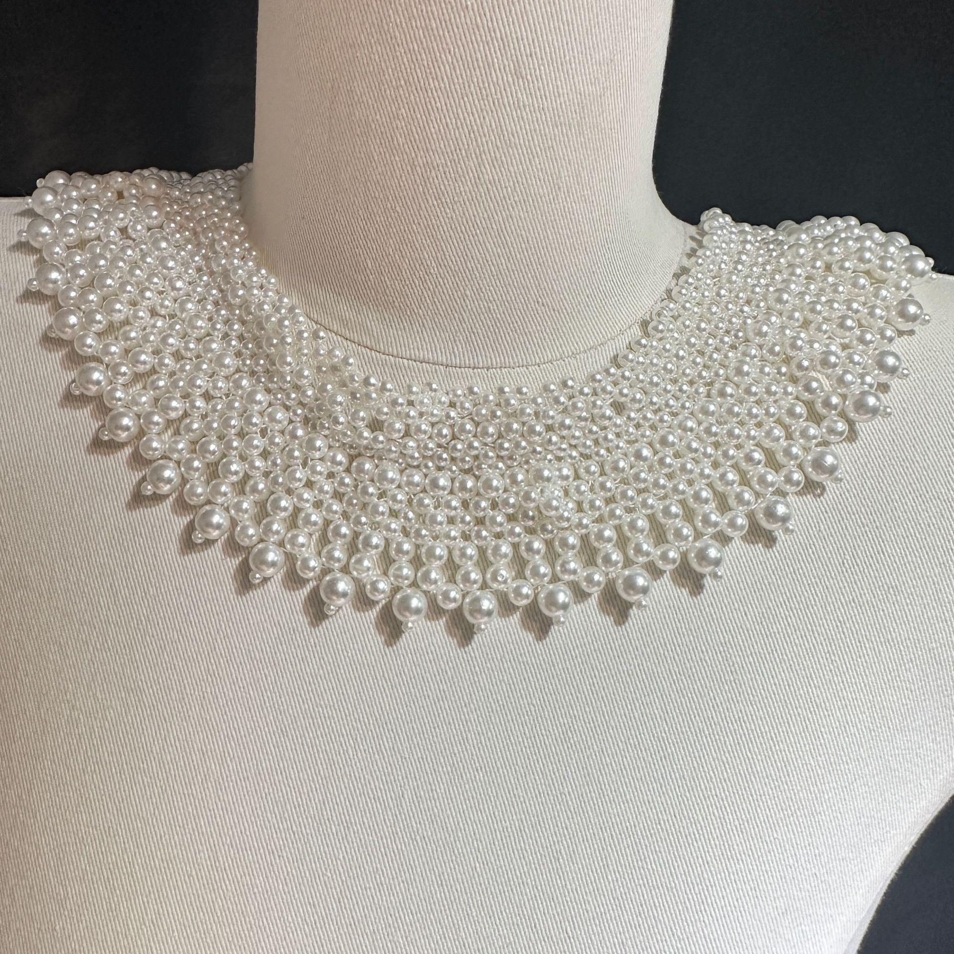 Nuevo Estilo Étnico Perla Tejido a Mano Collar Falso Joyería Hecho a Mano Collar de Malla Nicho de Lujo Accesible