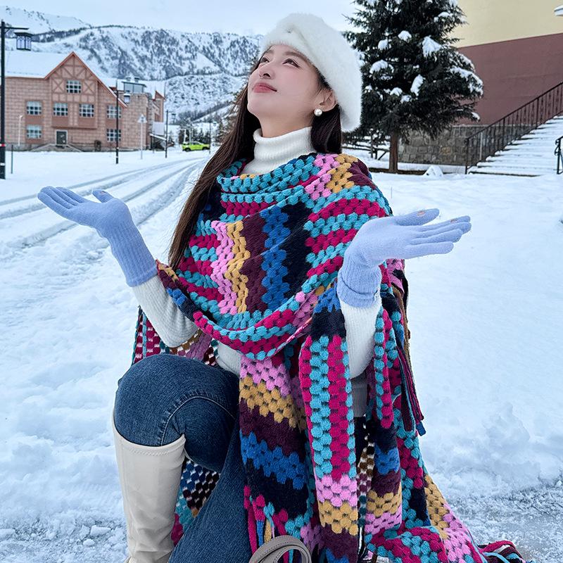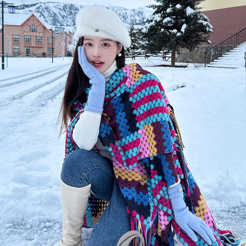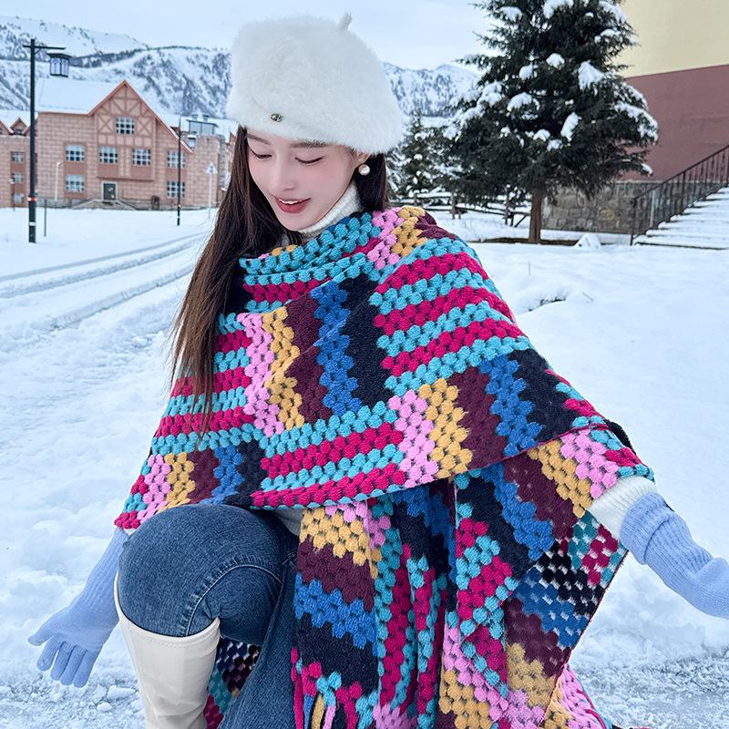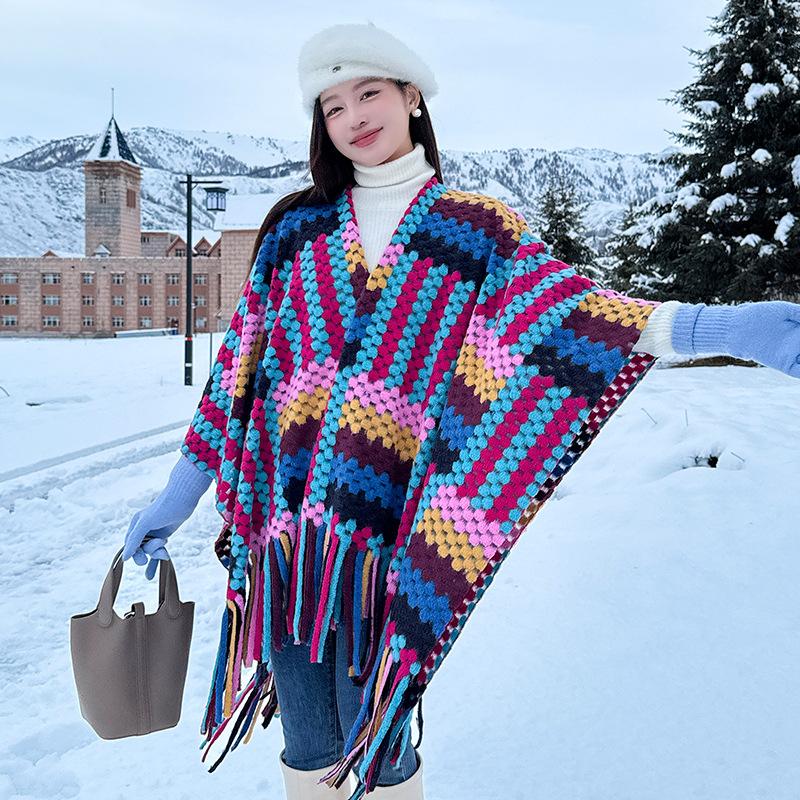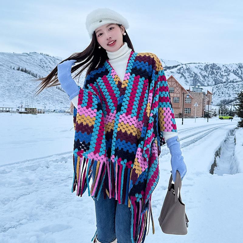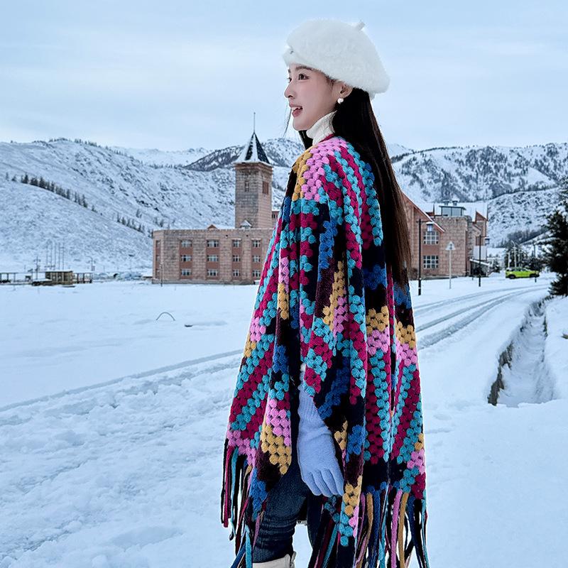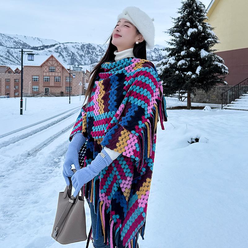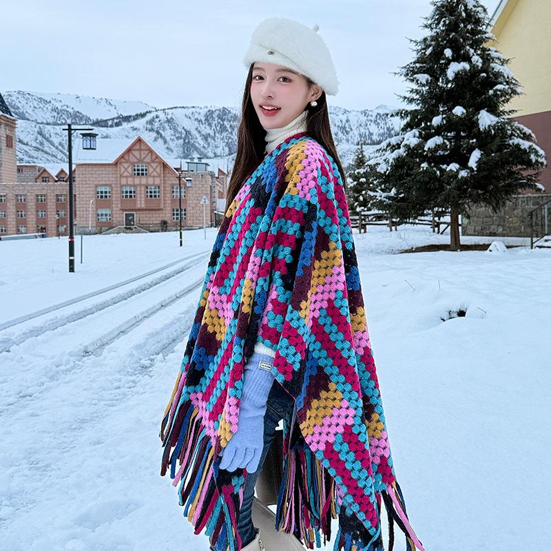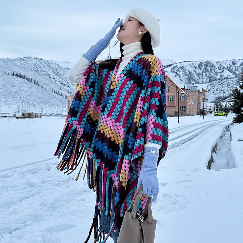 Cárdigan de otoño e invierno, capa grande, popular en Internet, de alta gama, con borlas, a cuadros, chal exterior, turismo, elegante, estilo extranjero, bufanda exterior.