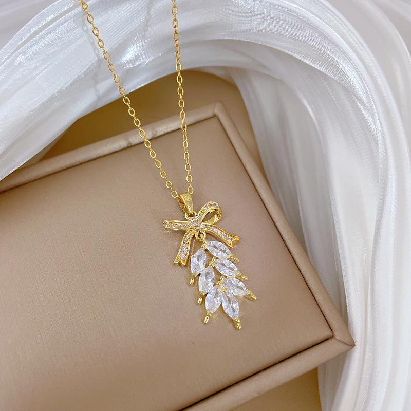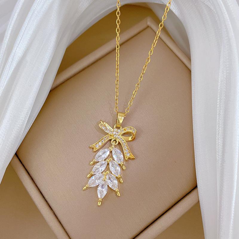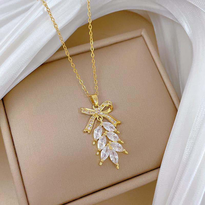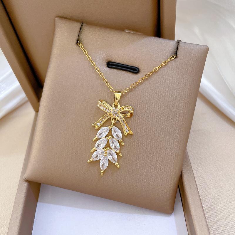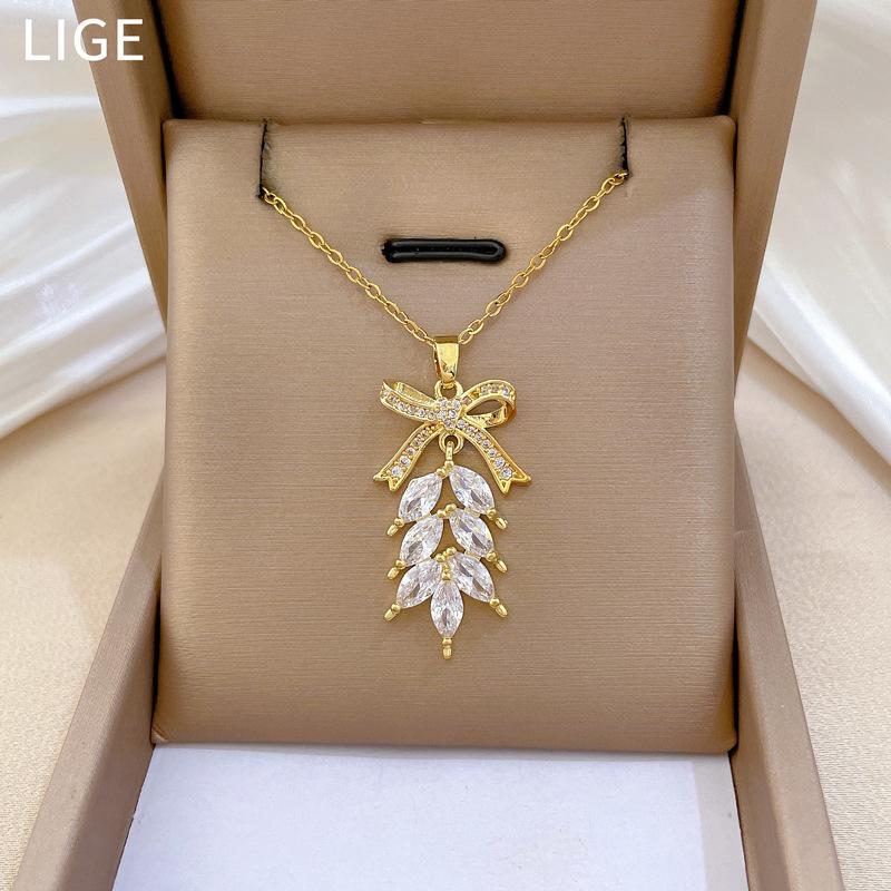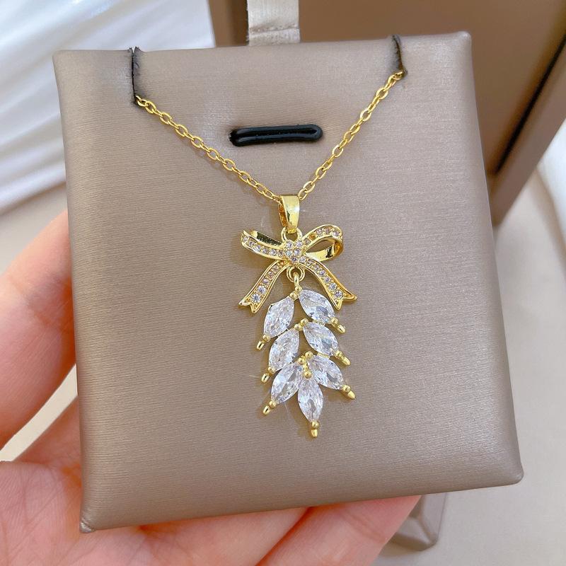 [Acero de Titanio] Borla Lazo Diamante Completo Lujo Ligero Elegante Magnífico Collar de Diamante Completo para Mujer Cadena Clavícula Versátil Acero de Titanio