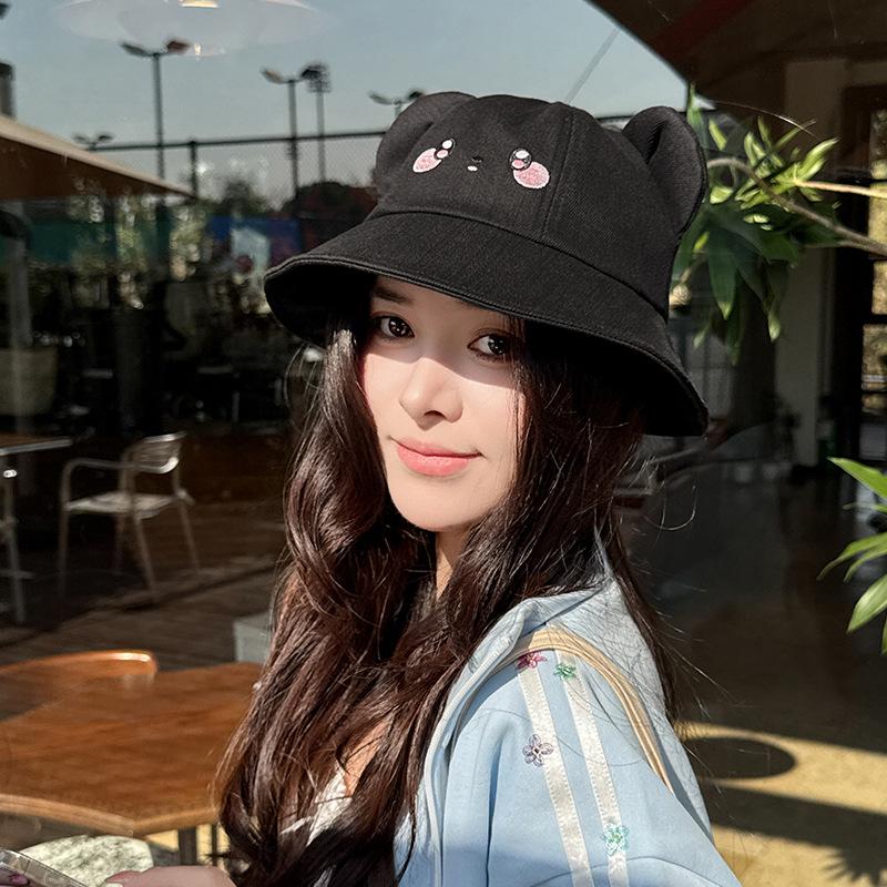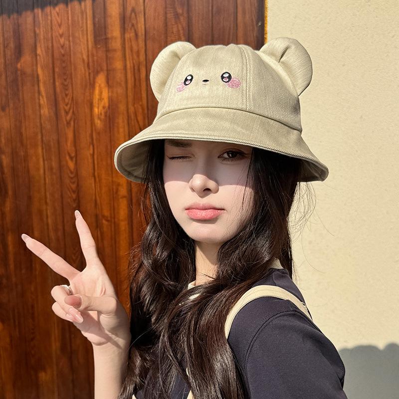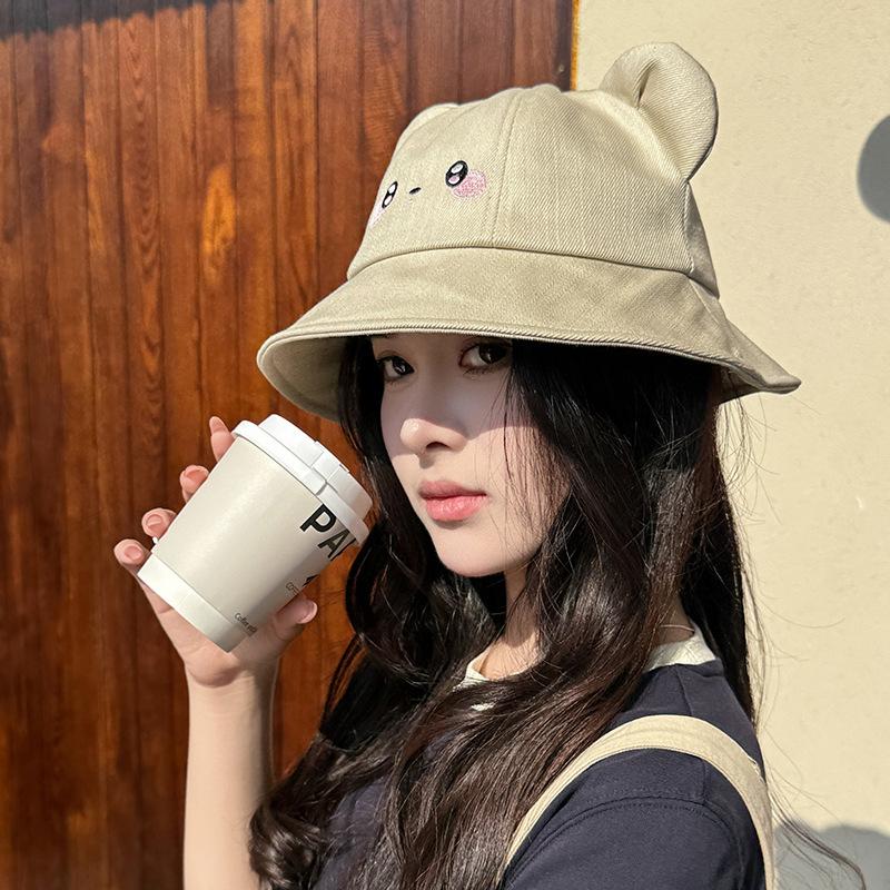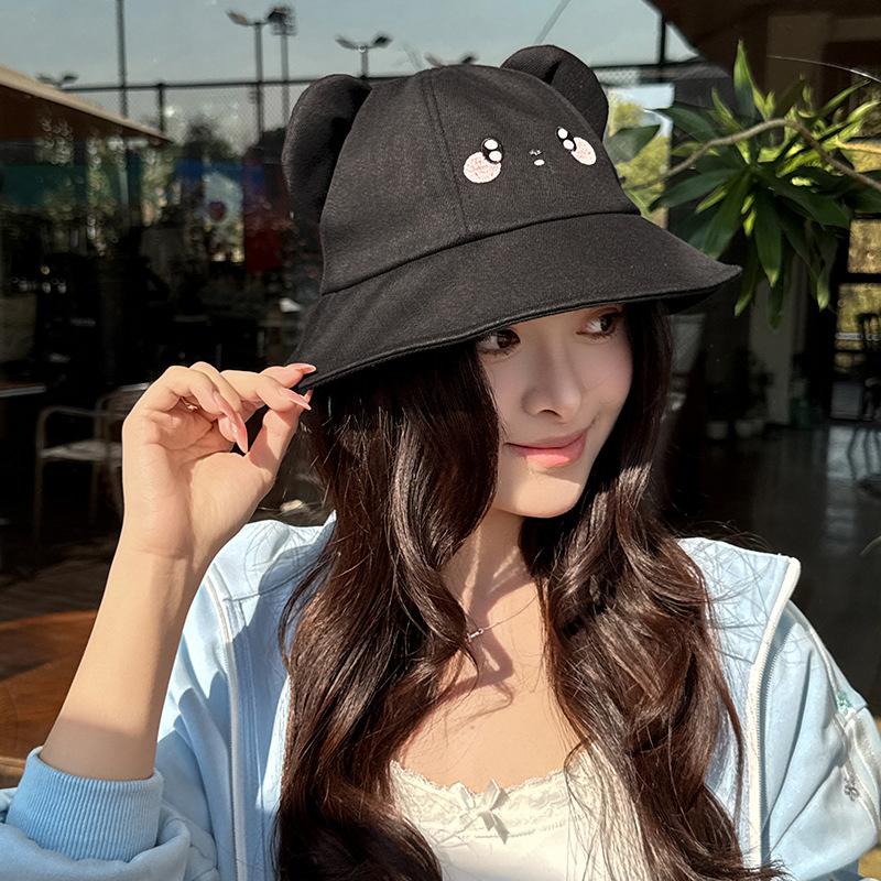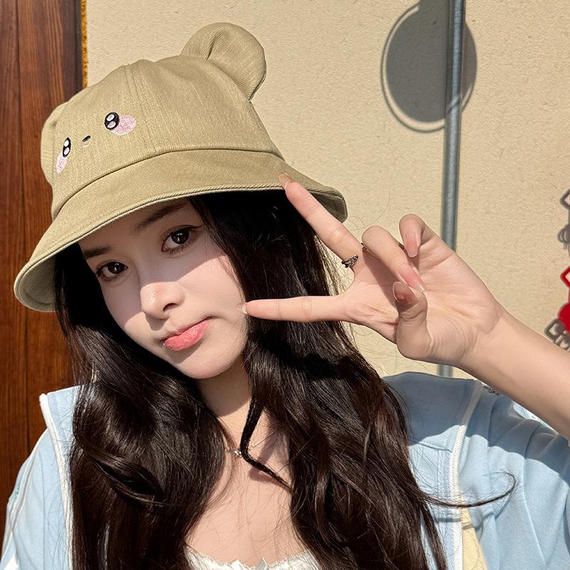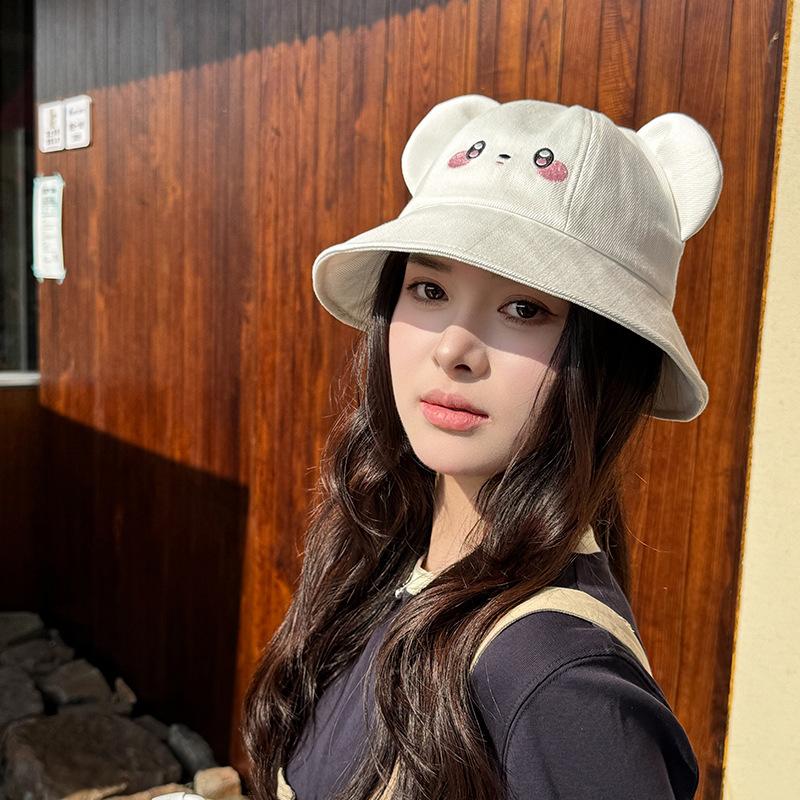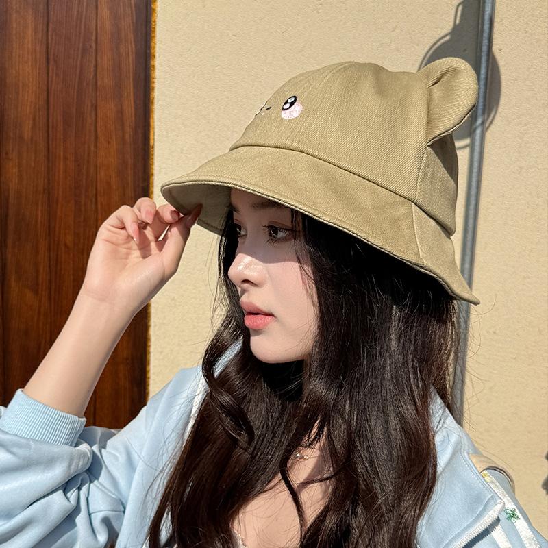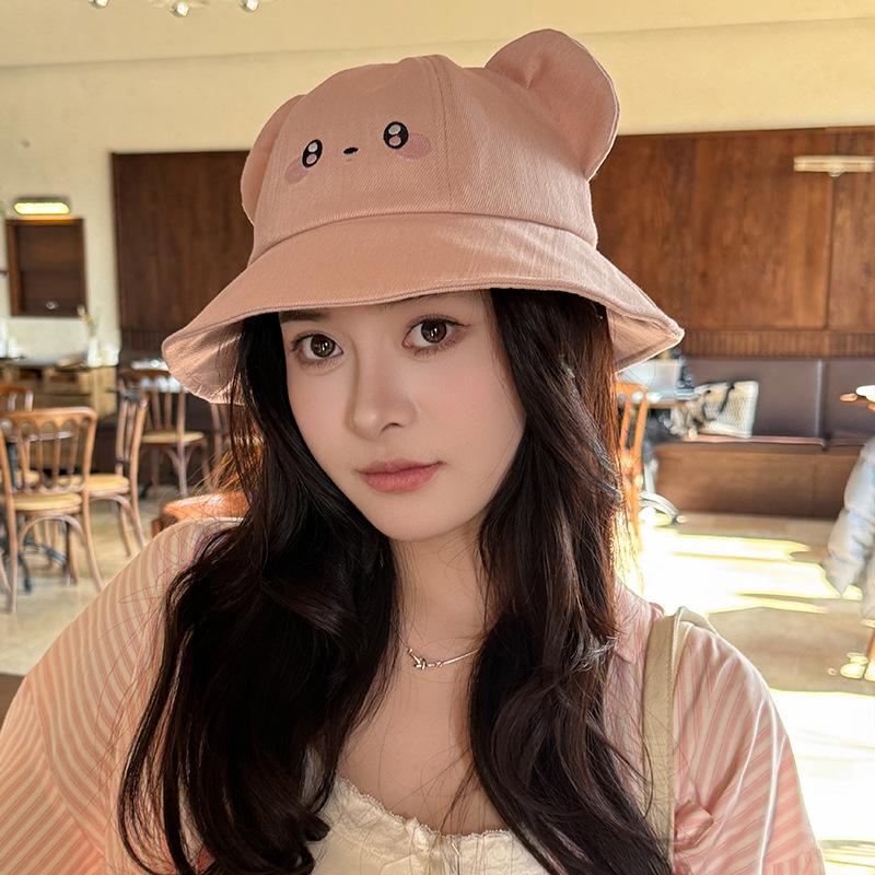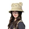 Sombrero para estudiantes femeninas, primavera y verano, protección solar, sombrero de lavabo, estilo coreano, lindo sombrero de pescador con orejas de oso, sombrero para el sol dulce que combina con todo.