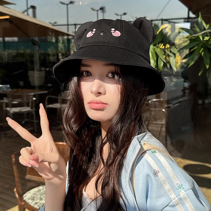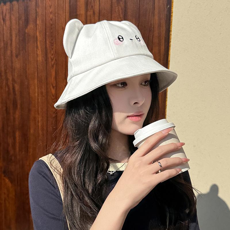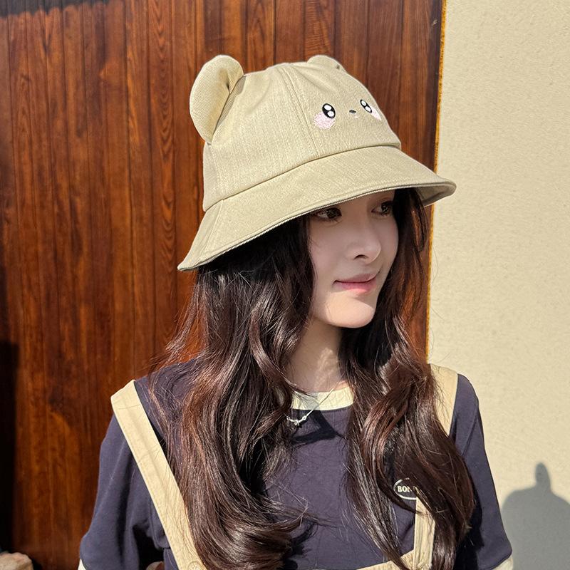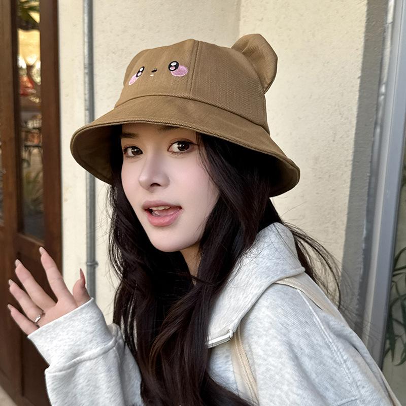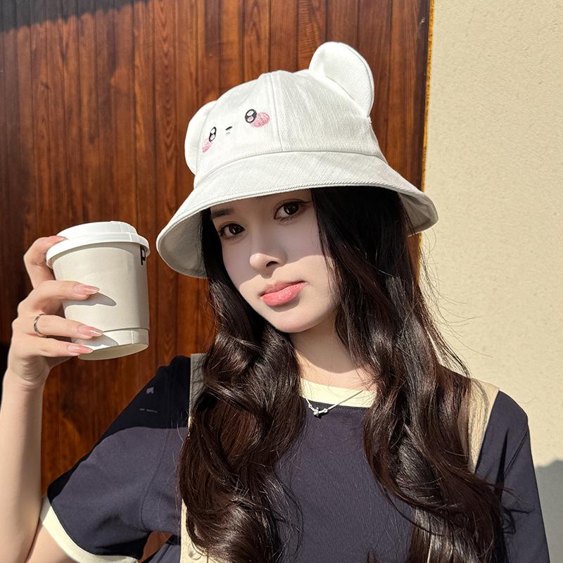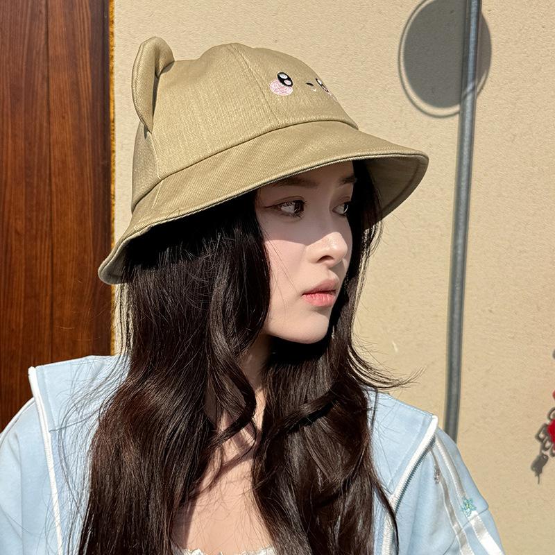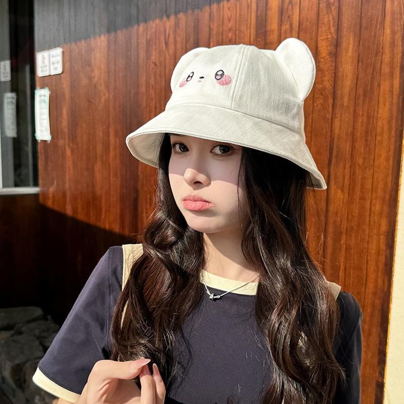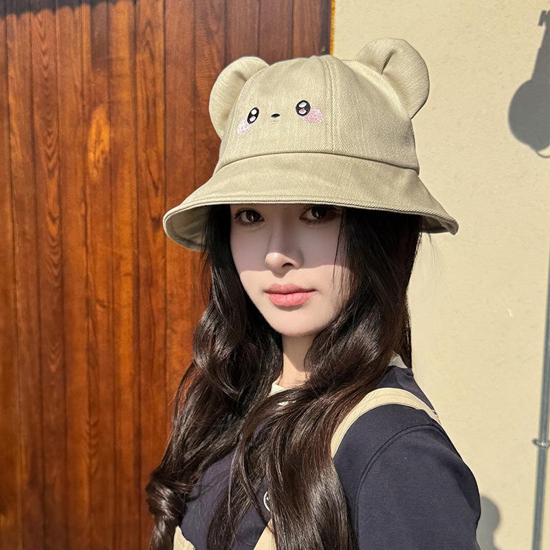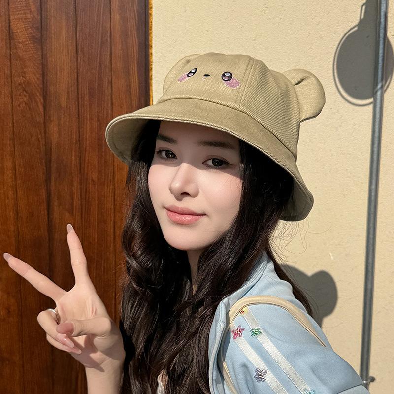 Sombrero para estudiantes femeninas, primavera y verano, protección solar, sombrero de lavabo, estilo coreano, lindo sombrero de pescador con orejas de oso, sombrero para el sol dulce que combina con todo.