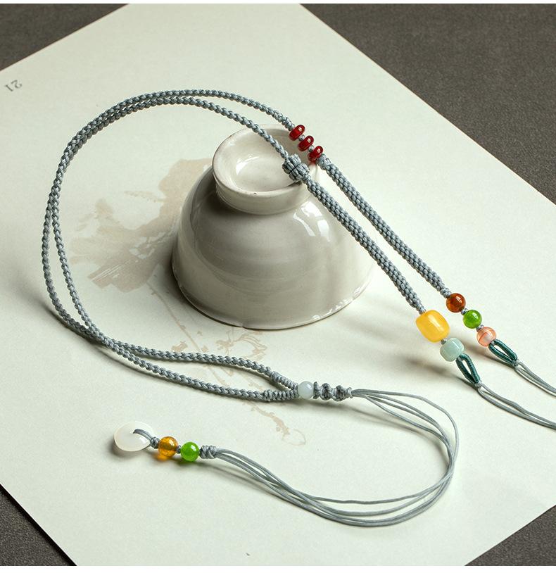 Colgante de Cuello Totalmente Tejido a Mano Collar Cruz Cordón Dzi Cordón de Cuentas Ajustable Cuerda Colgante de Cuentas Genuinas