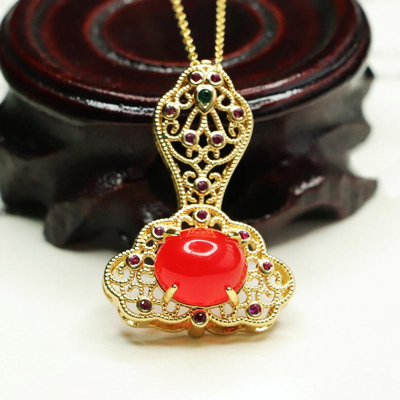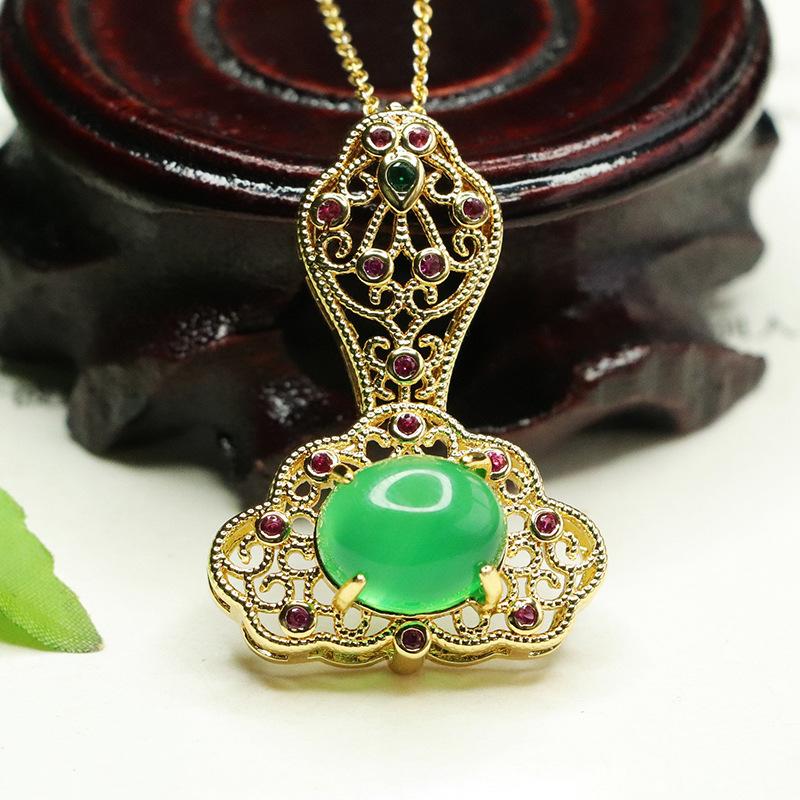 Colgante de calcedonia verde hielo Aiyu Xiangyun Ruyi, collar de ágata roja, estilo étnico, venta al por mayor, AY4012303