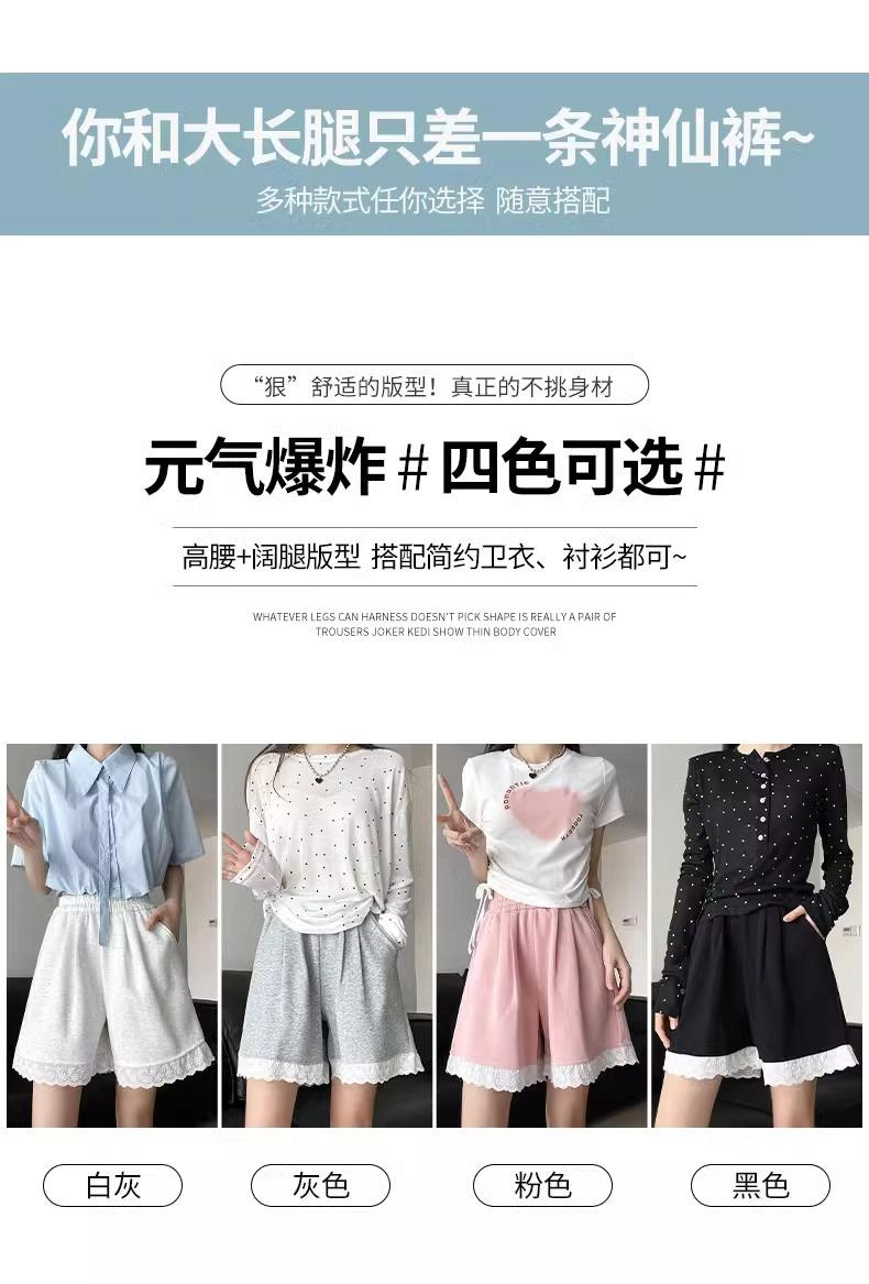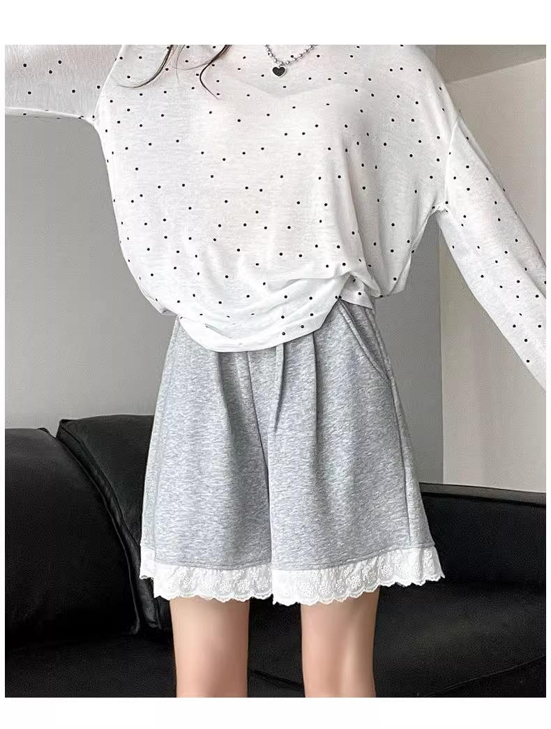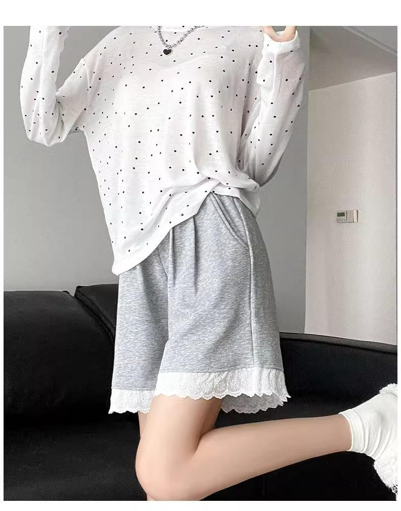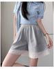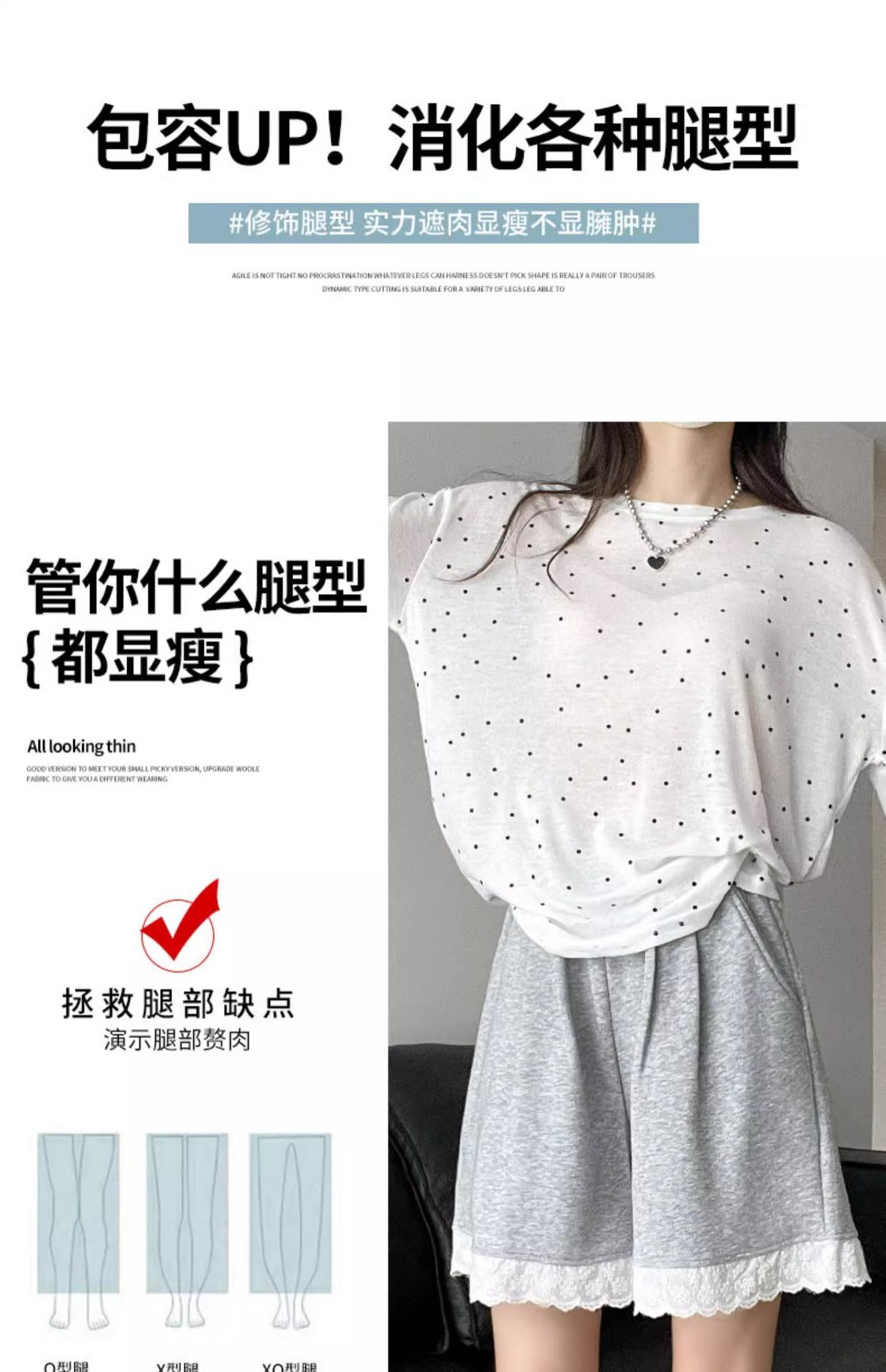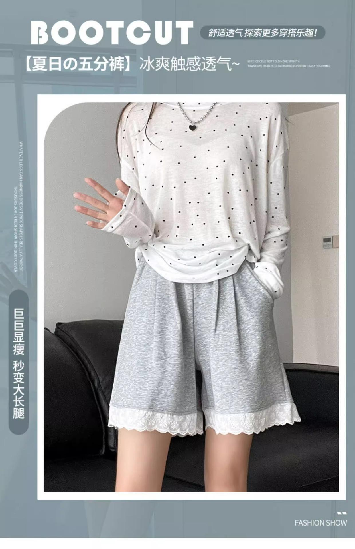 Pantalones cortos deportivos grises de encaje nuevos y pequeños para mujer, de verano 2025, finos, de cintura alta, anchos y sueltos.