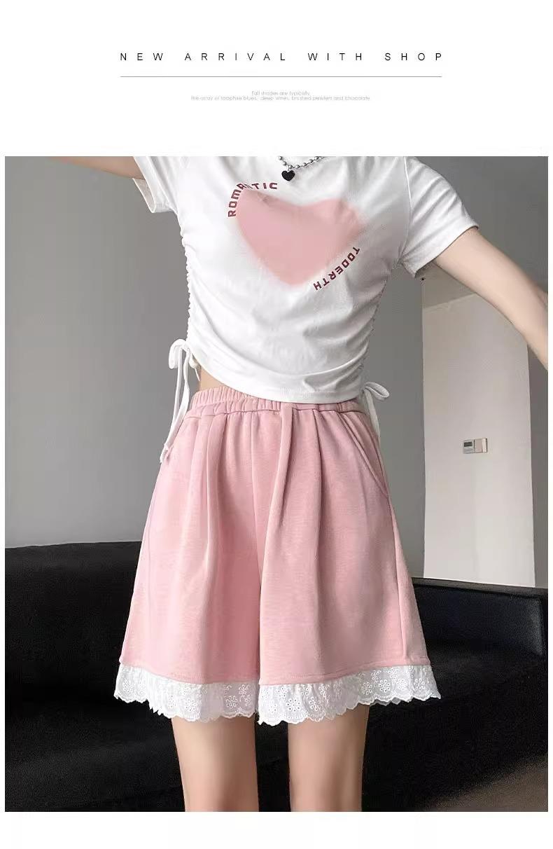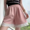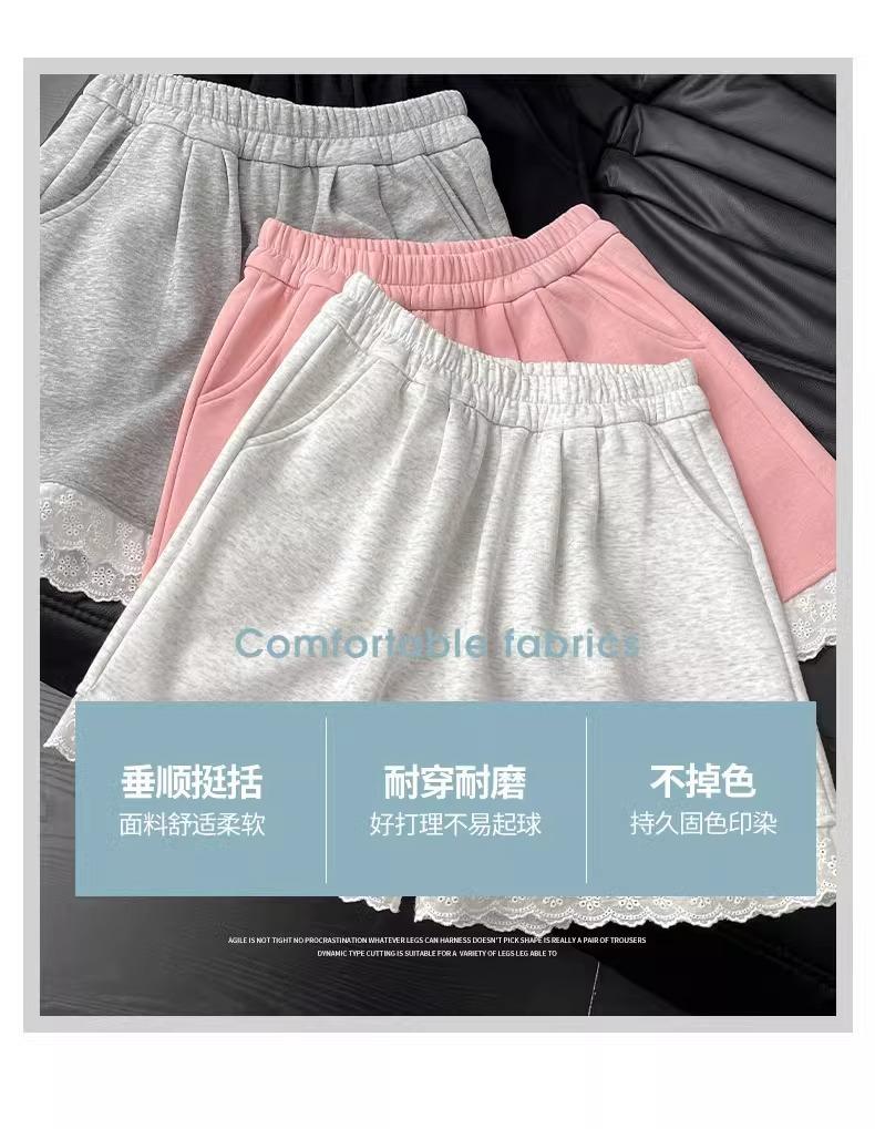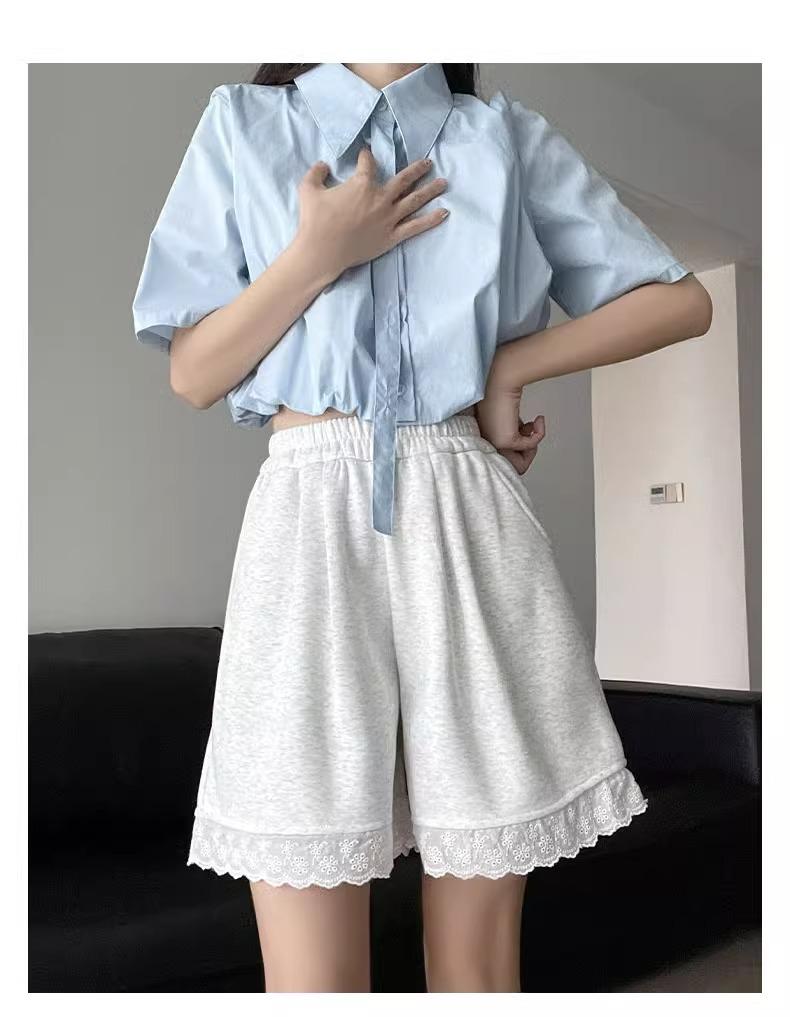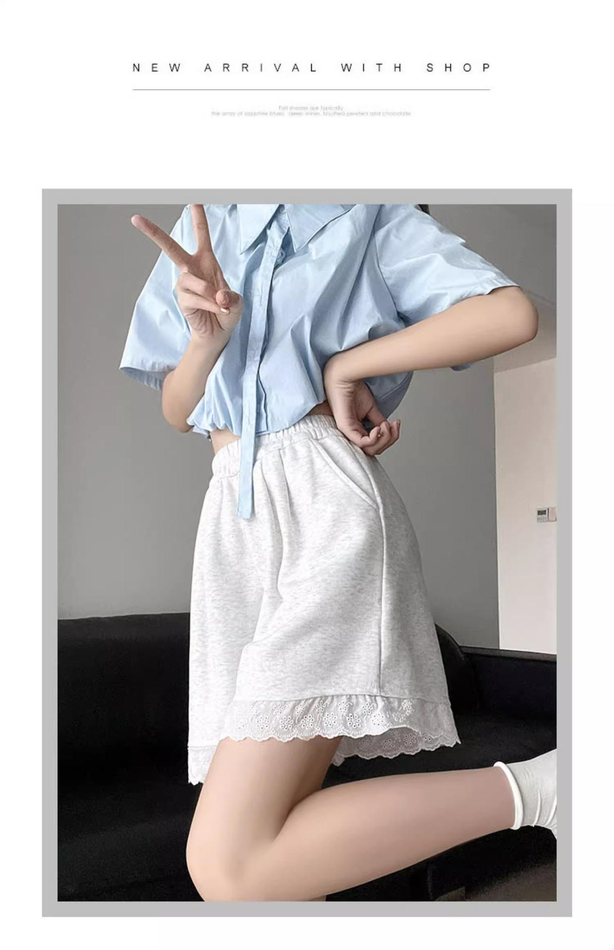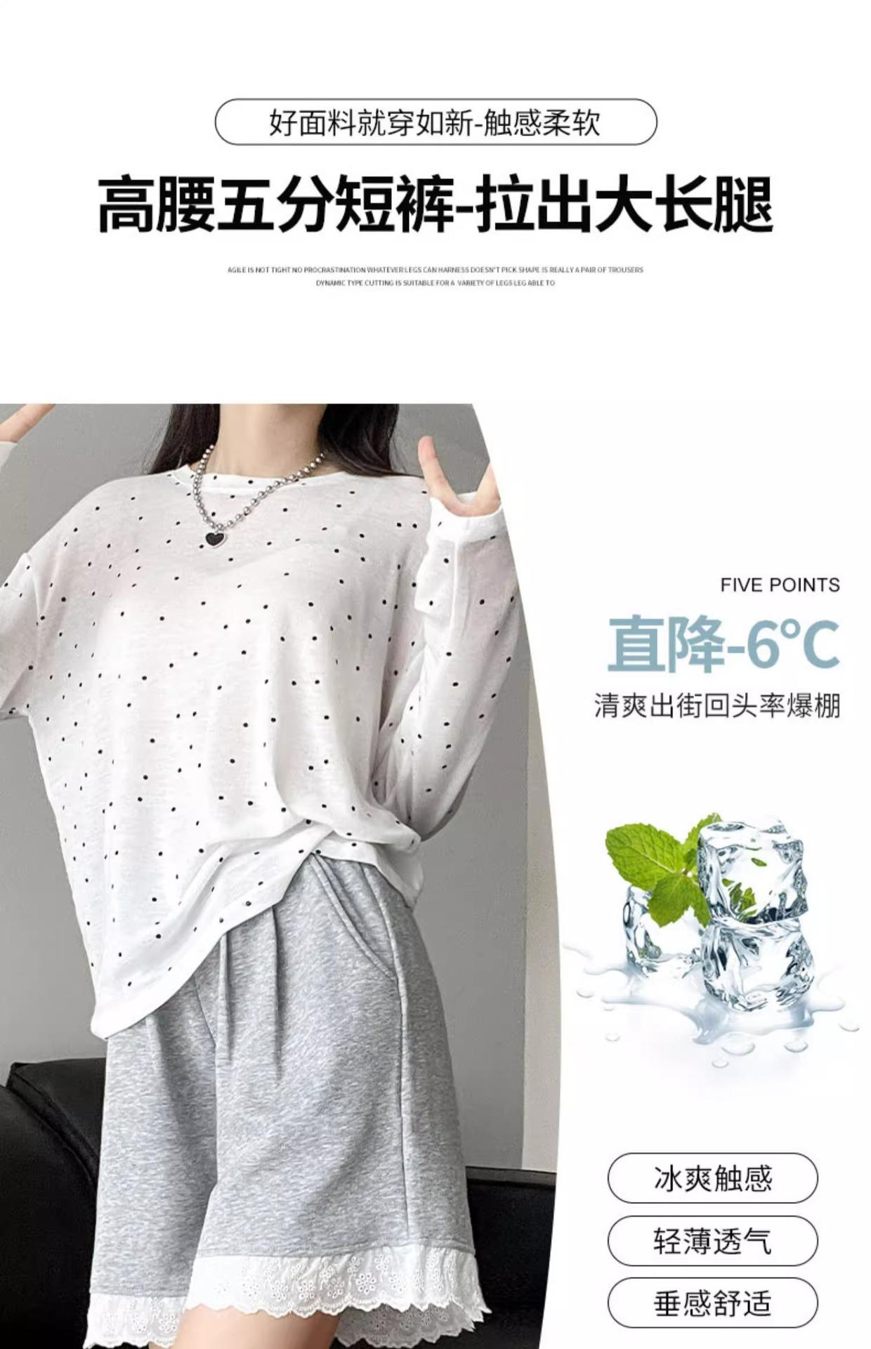 Pantalones cortos deportivos grises de encaje nuevos y pequeños para mujer, de verano 2025, finos, de cintura alta, anchos y sueltos.