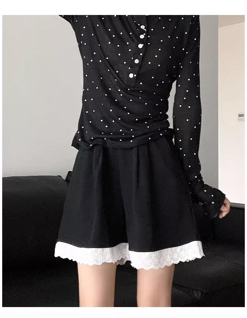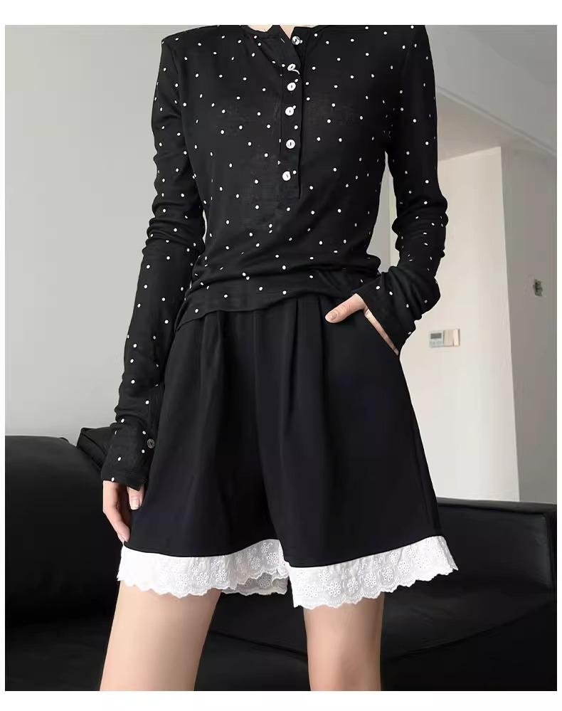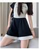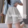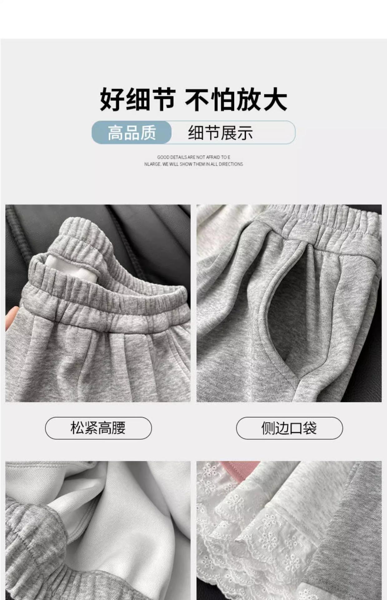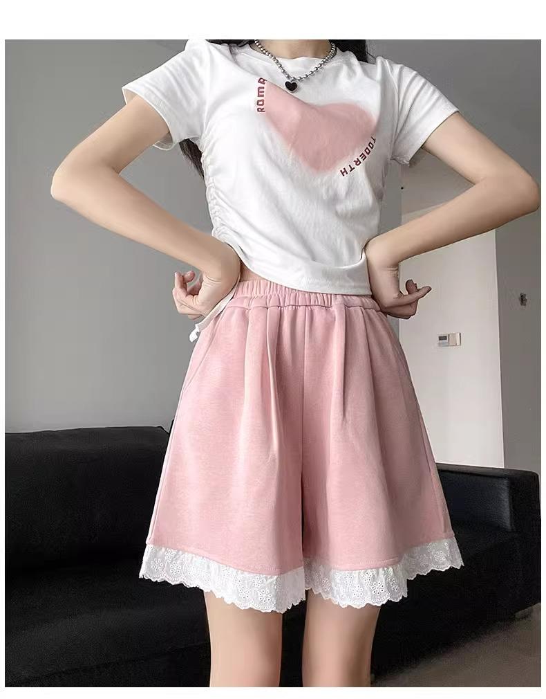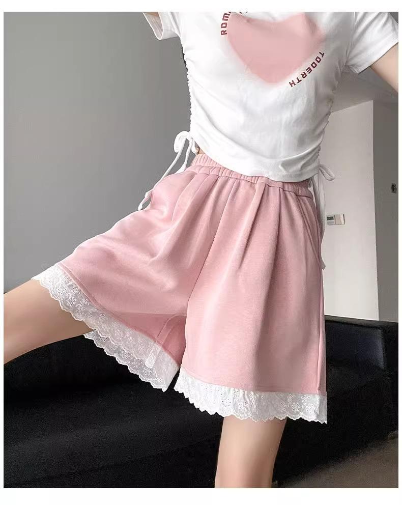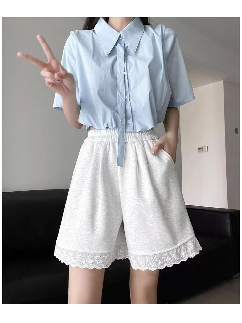 Pantalones cortos deportivos grises de encaje nuevos y pequeños para mujer, de verano 2025, finos, de cintura alta, anchos y sueltos.