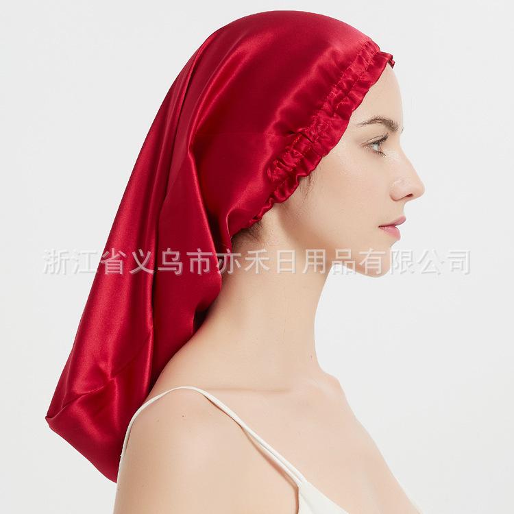 Gorro de Noche Largo de Seda Ajustable Transfronterizo Satén para Cabello Largo Cuidado del Cabello Sombrero Gorro de Noche de Cola Larga Gorro Pulóver Gorro Tapi