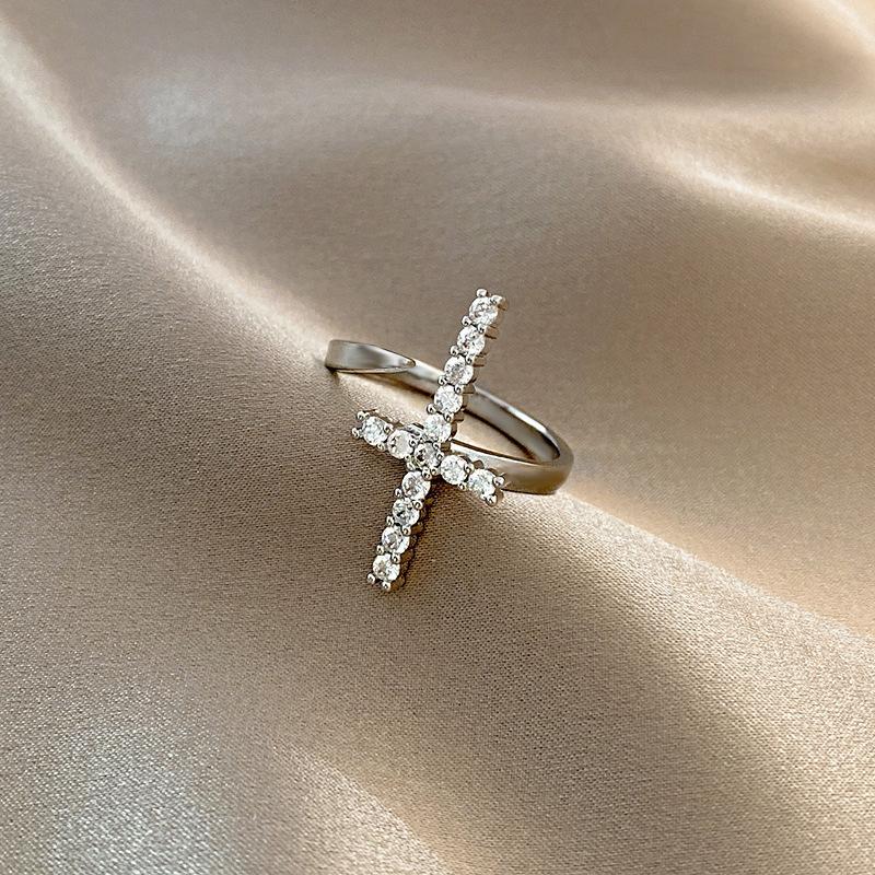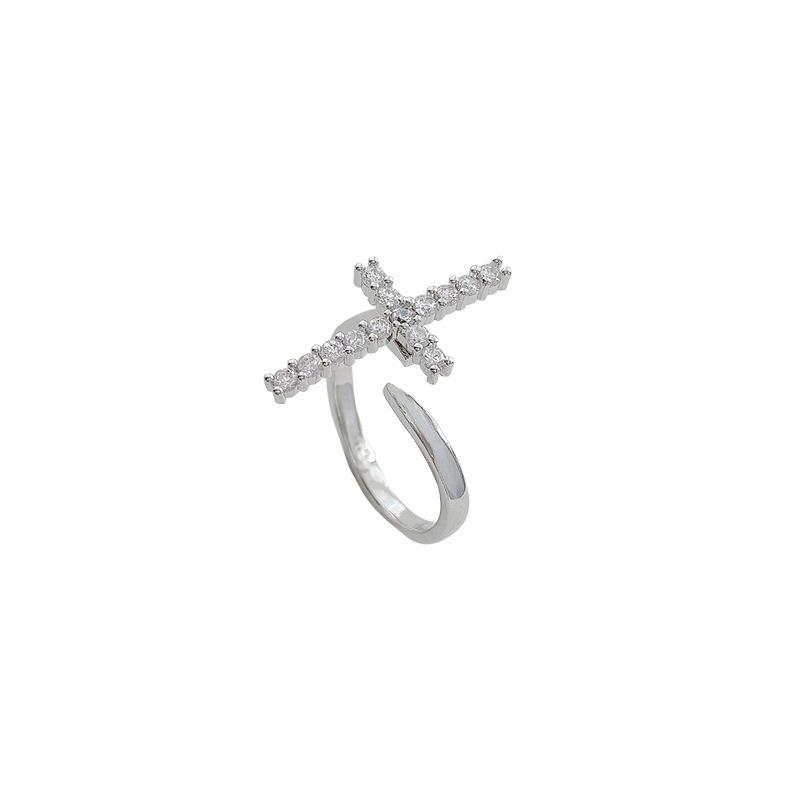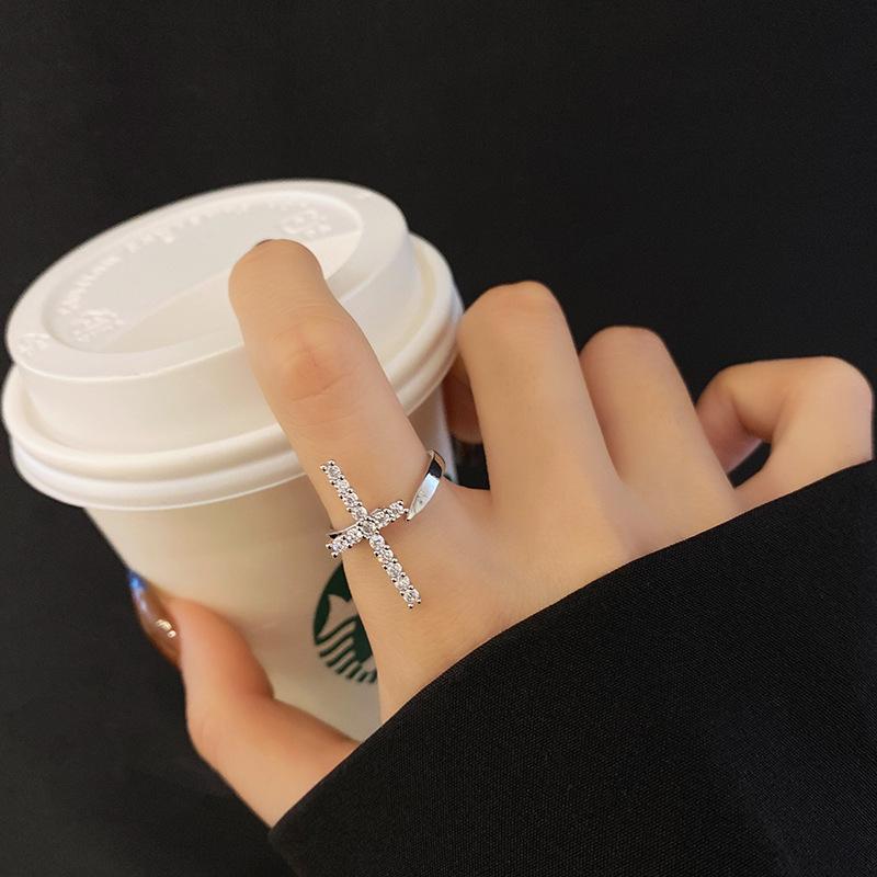 Anillo Super Flash Cross Micro-incrustado Personalidad Nicho Alta Gama Lujo Ligero Anillo Ins Estilo Frío Anillo para el Dedo Índice
