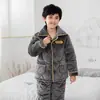 Pijamas de franela para niños de otoño e invierno, de terciopelo de cristal grueso, con relleno de algodón, para el hogar.