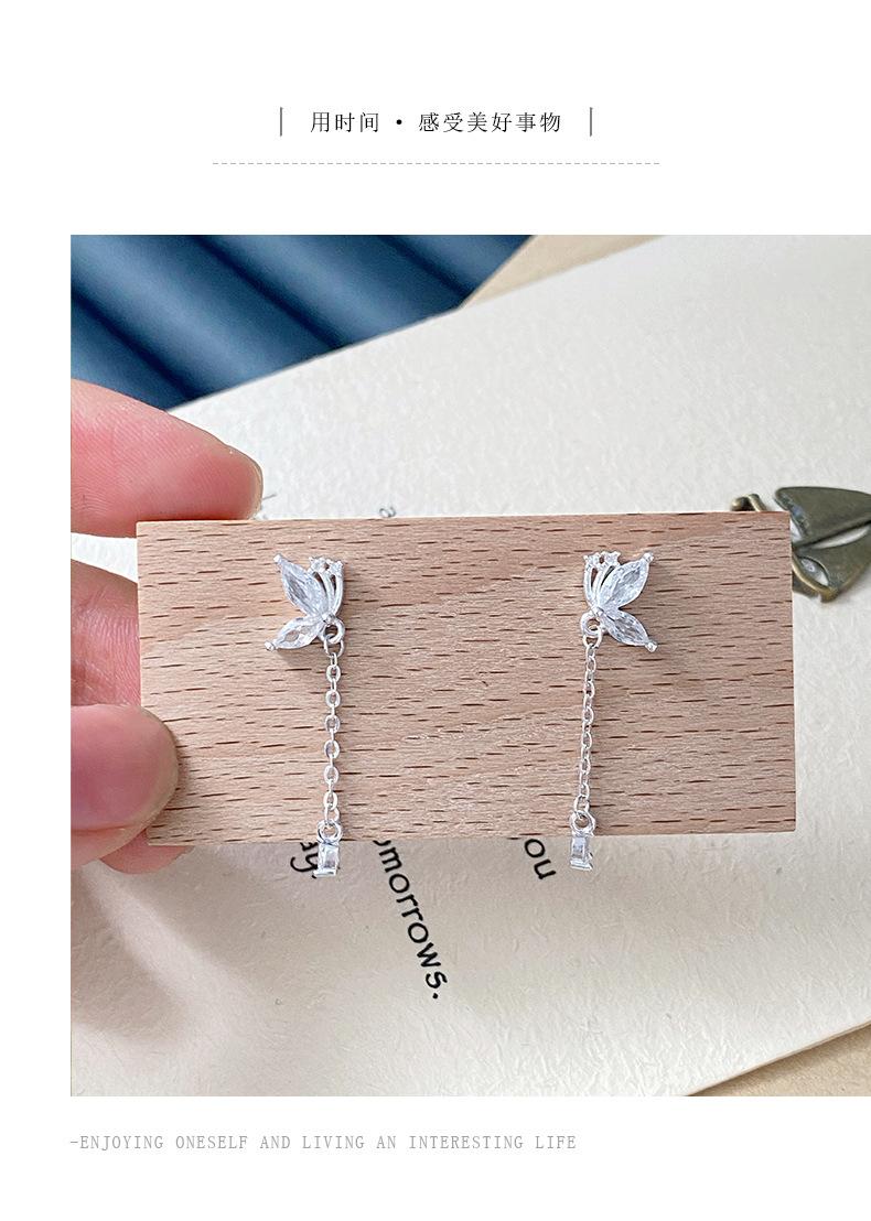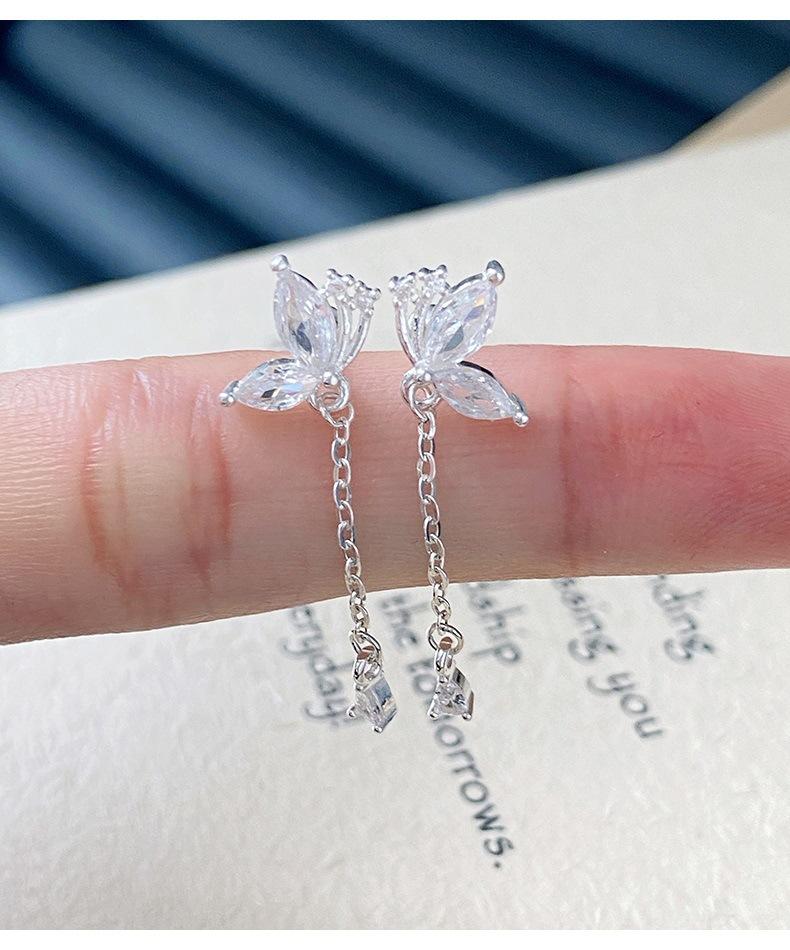 Nuevos pendientes de borla de mariposa de estilo chino con incrustaciones de circonitas, ligeros, de lujo, de alta gama, con diseño exquisito, con forma de gota y hueso para la oreja.