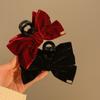 Horquilla de terciopelo de doble cara con lazo grande para mujer, elegante, de alta gama, color negro, para otoño e invierno, con clip de tiburón.
