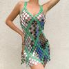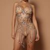 Vestido sexy de acrílico transfronterizo europeo y americano con gemas, lentejuelas cosidas, espalda descubierta, borlas huecas, cadena para la cintura, cadena para el cuerpo