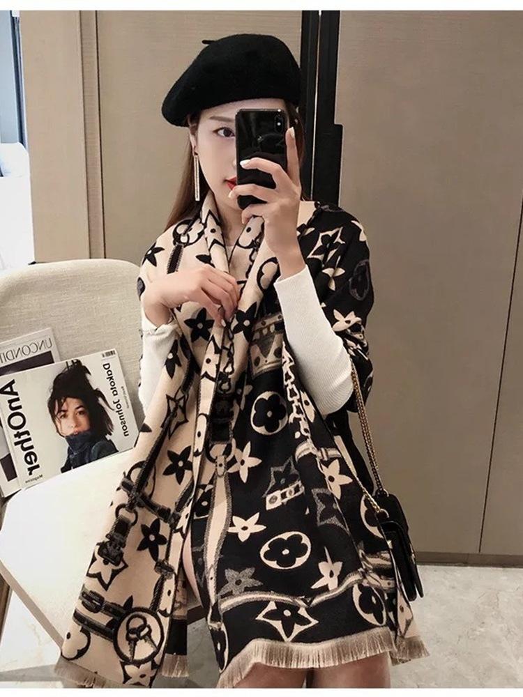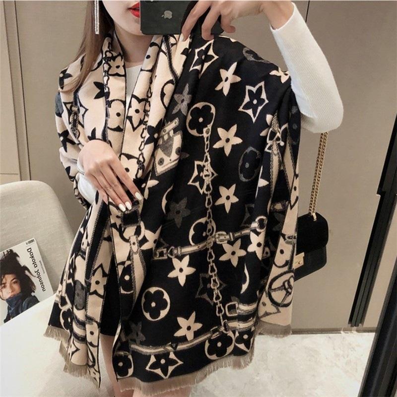 Bufanda de cachemira de imitación europea y americana para otoño e invierno, chal para mujer, bufanda cálida de doble cara y dos colores, estilo occidental largo de moda, combina con todo.