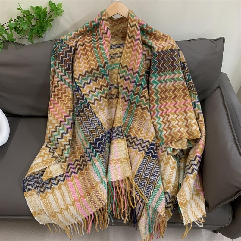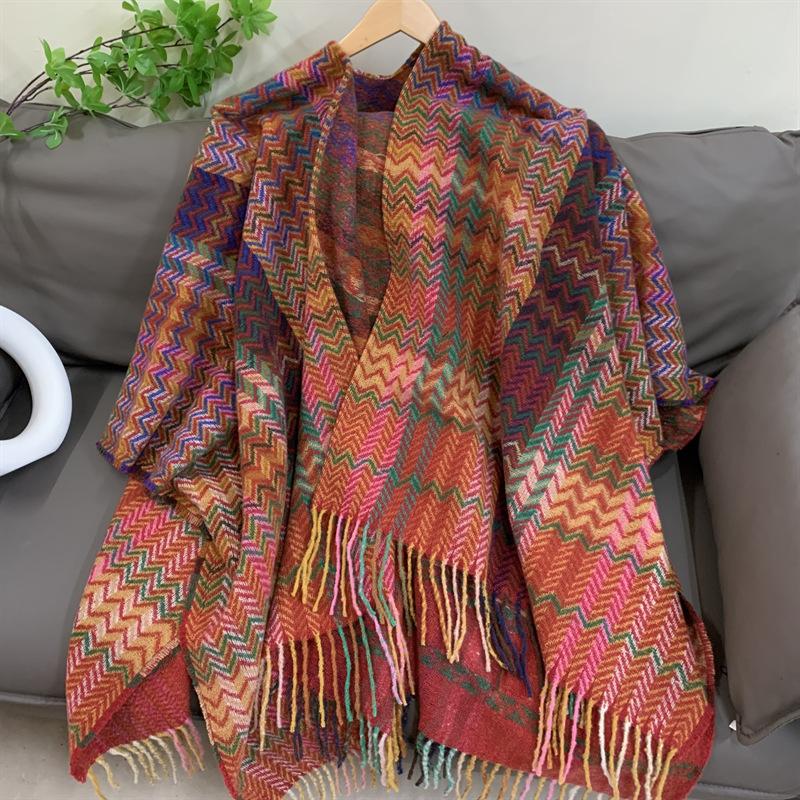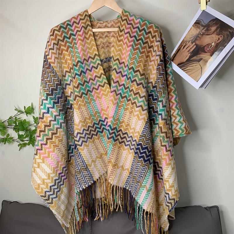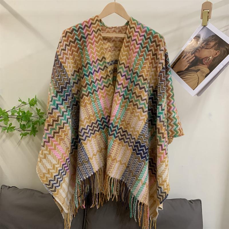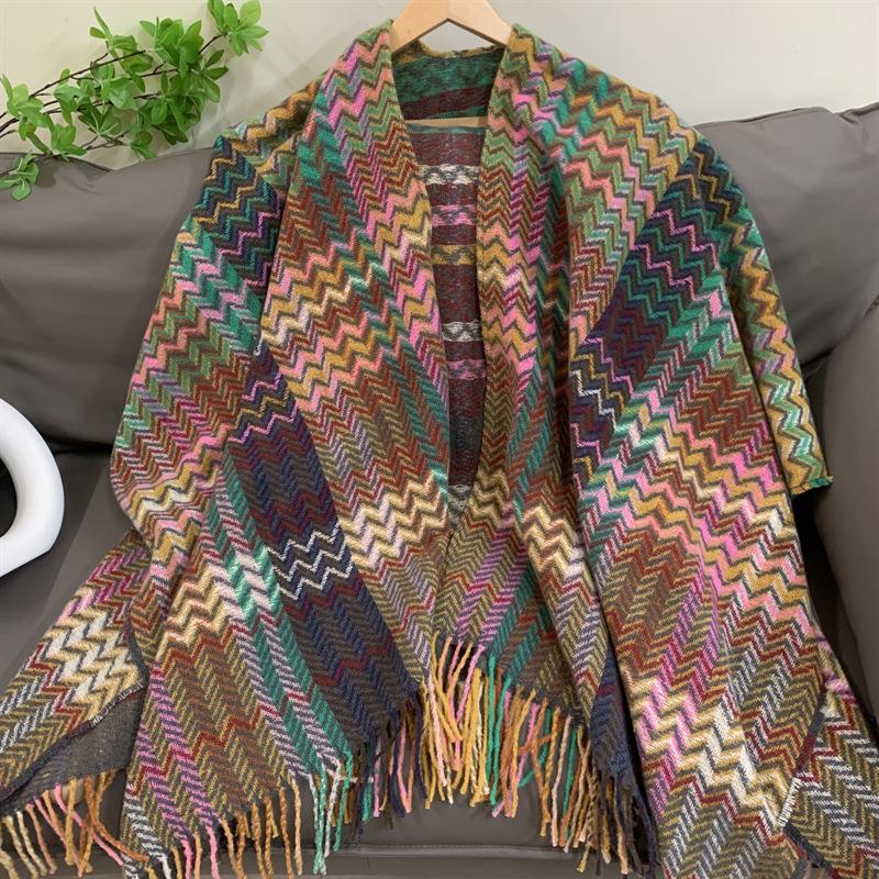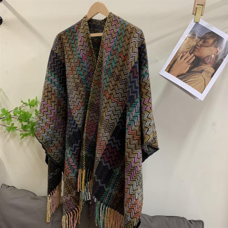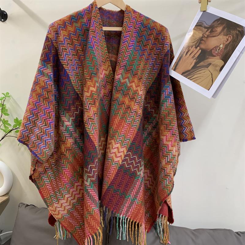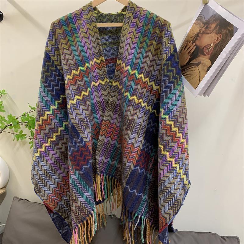 Nuevo estilo étnico borla capa exterior primavera y otoño tejido viaje Colorido Yunnan Xizang viaje chal exterior