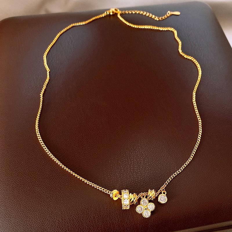 Nuevo Collar de Flor Romboidal de Zirconia Estilo Chino Retro Versátil Simple Cadena para Clavícula Collar de Lujo Ligero de Alta Gama Venta al por Mayor para Mujeres
