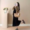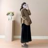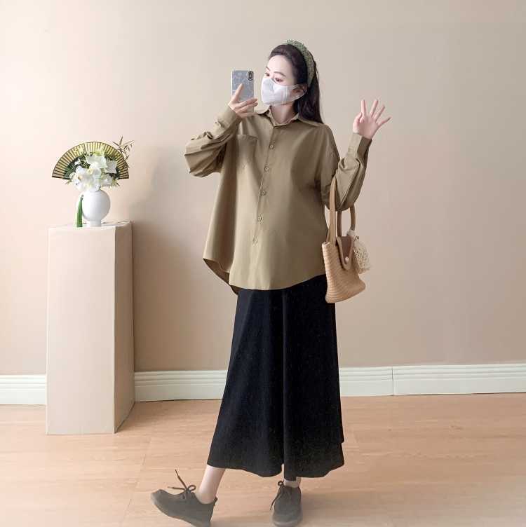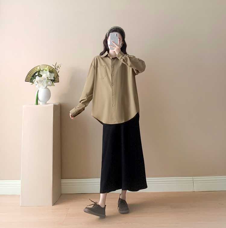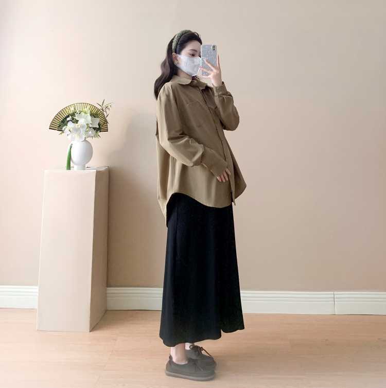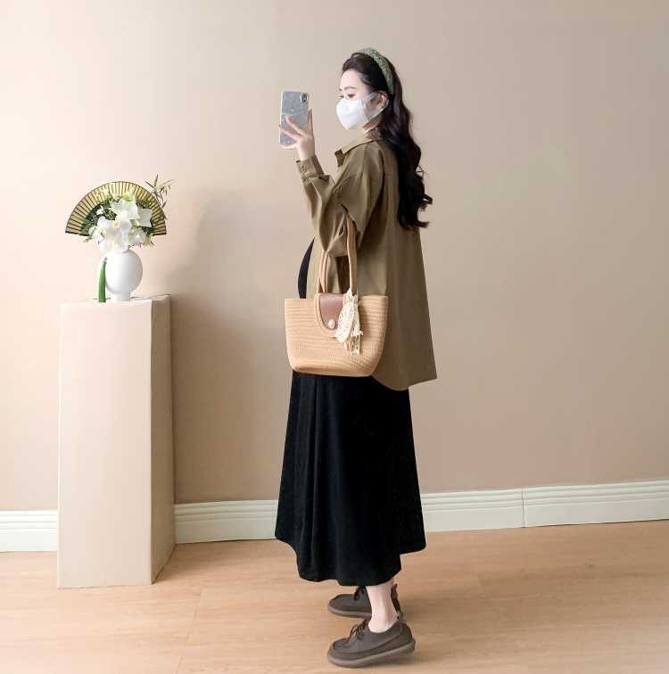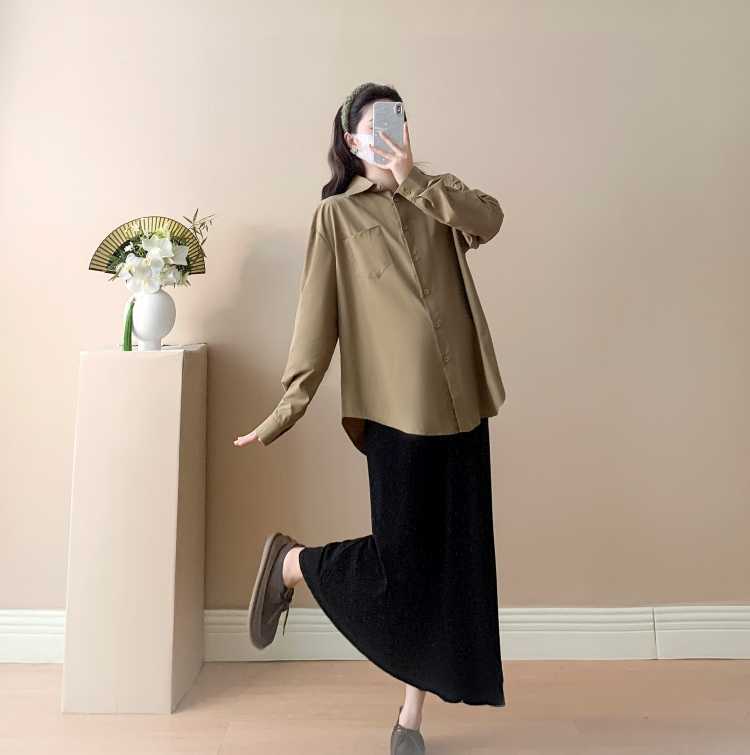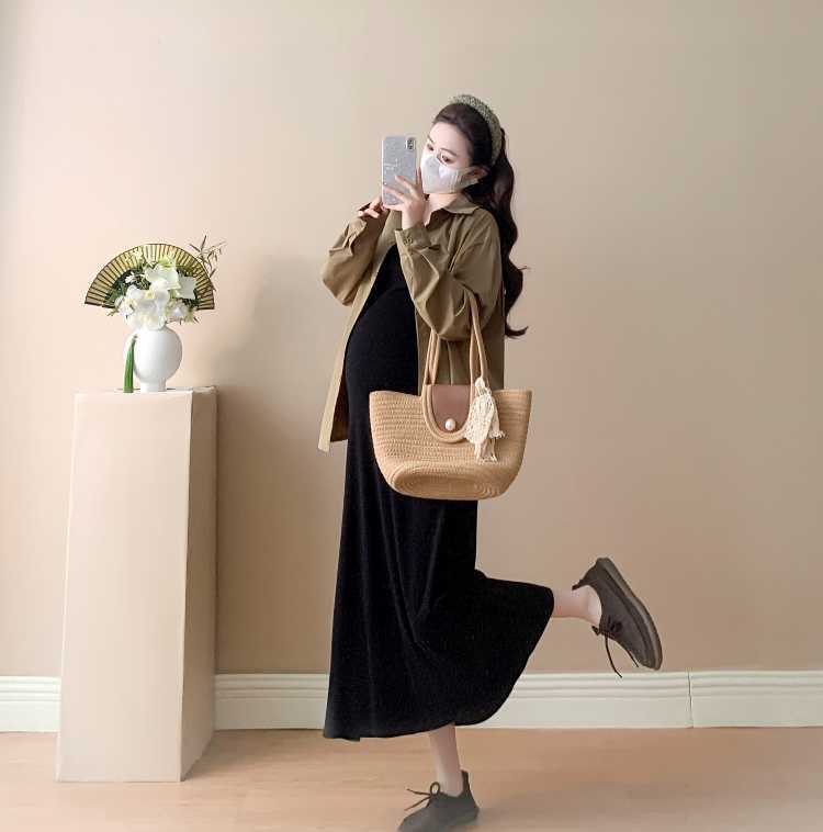 Vestido largo de maternidad de dos piezas, de moda sencilla, de primavera 2025, con camisa de manga larga, ajustado y elástico, para embarazadas, con tirantes.