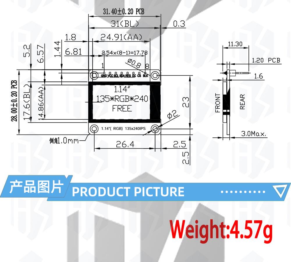 Nueva pantalla LCD TFT de vista completa IPS de 1,14 pulgadas, módulo de pantalla a color, puerto serie SPI 135x240