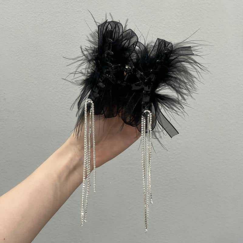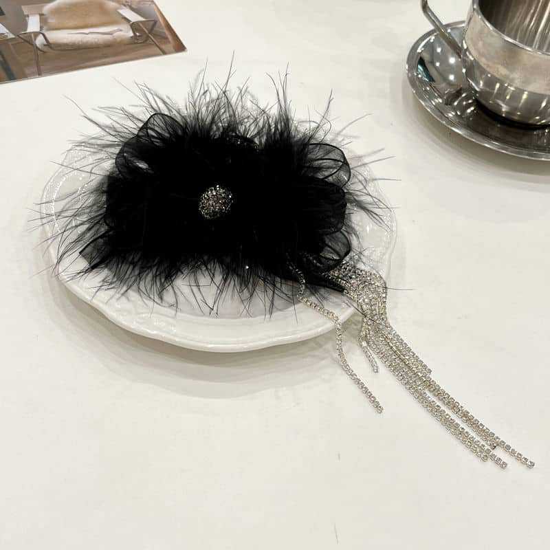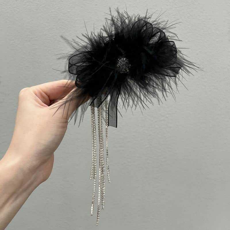 Pinza para el cabello de alta calidad con lazo de cinta, borla de plumas, para mujer, nuevo 2023, para parte trasera de la cabeza, recogido, clip de tiburón
