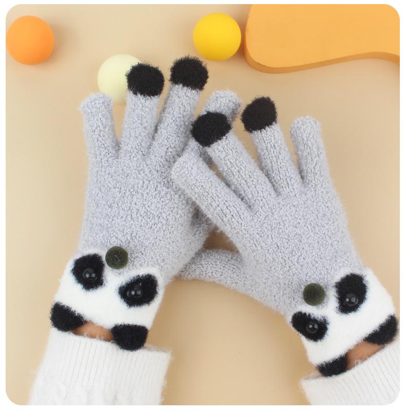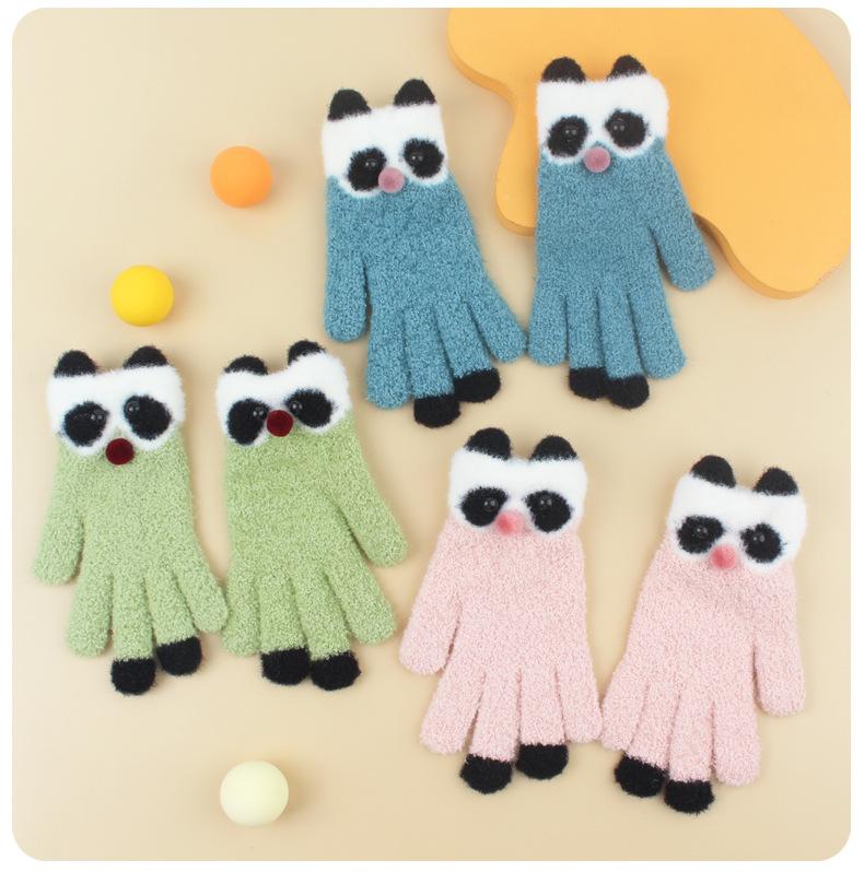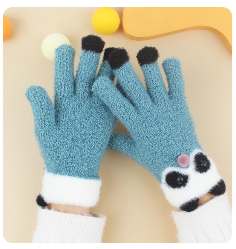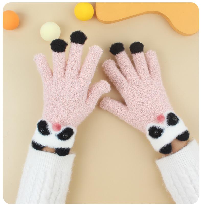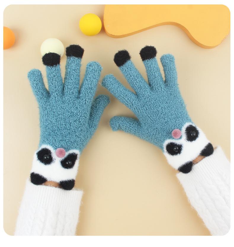 Guantes de Felpa Gruesos y Cálidos de Panda Lindo para Estudiantes en Invierno con Forro Polar para Ciclismo Frío y a Prueba de Viento Guantes de Cinco Dedos
