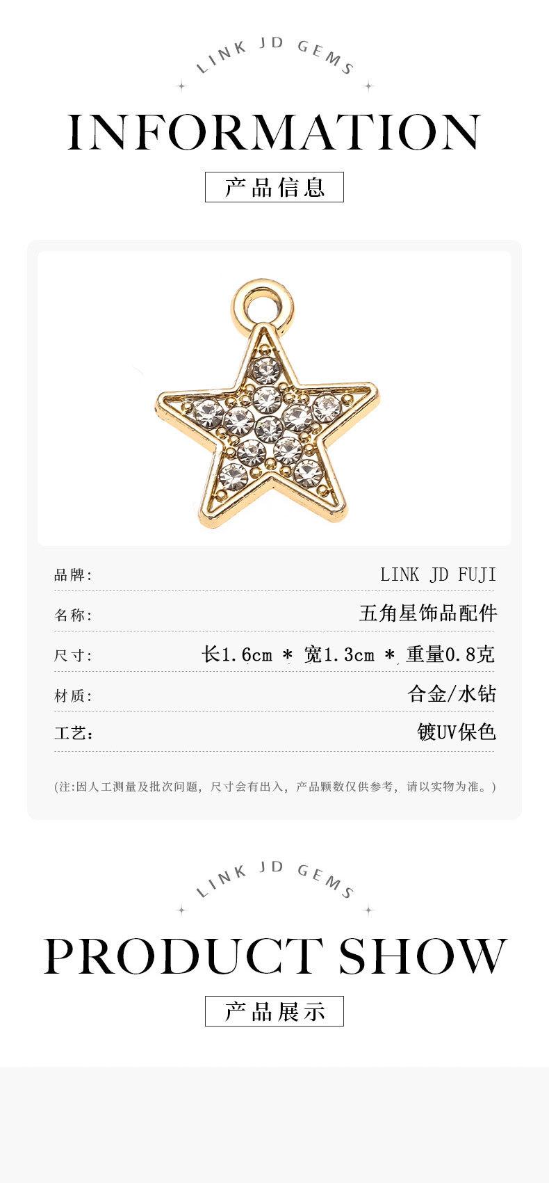 Colgante de Accesorios de Estrella de Cinco Puntas Sencillo Aleación Diamante Accesorios de Joyería DIY Pulsera Ropa Collar Llavero