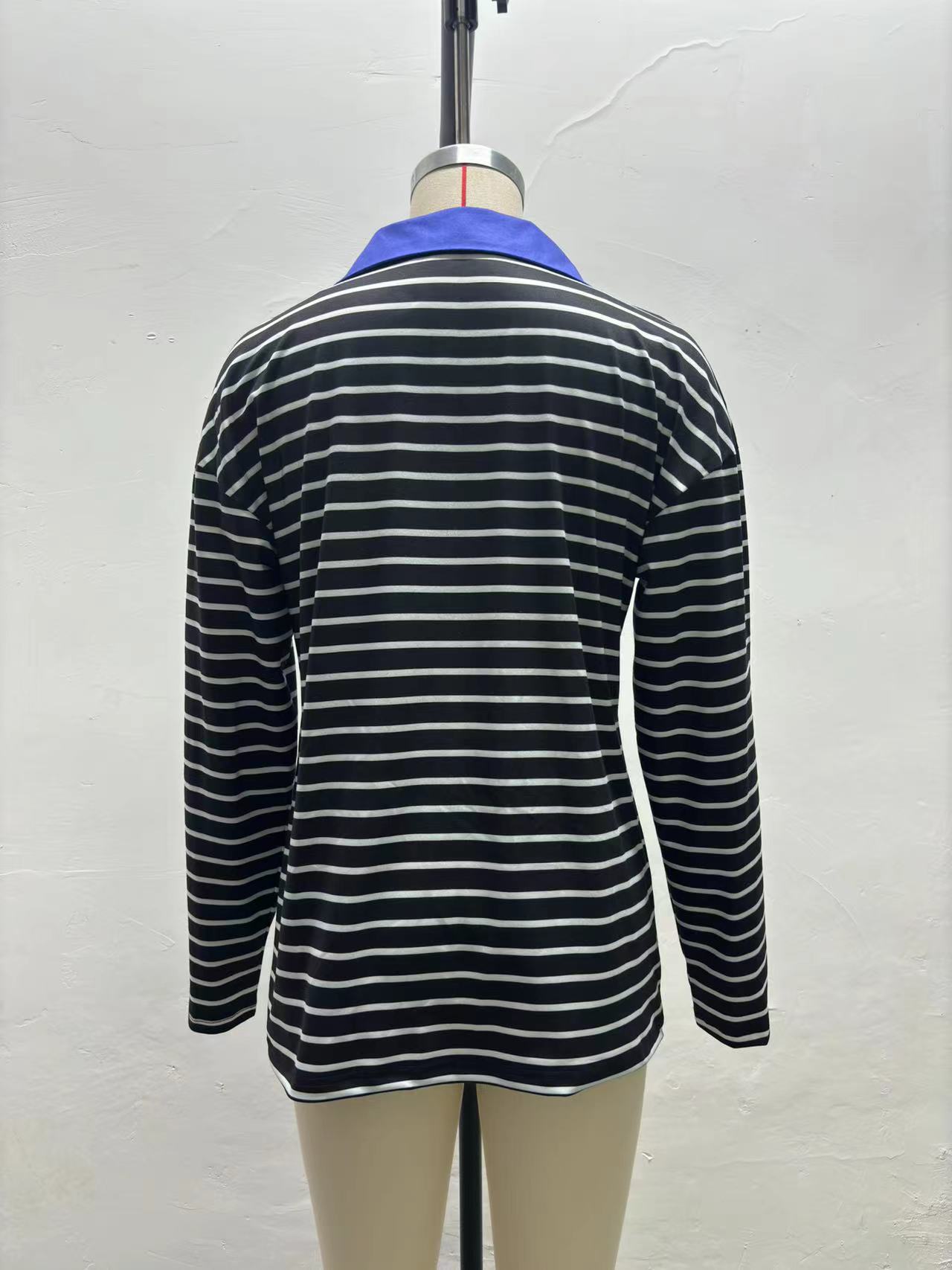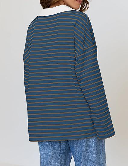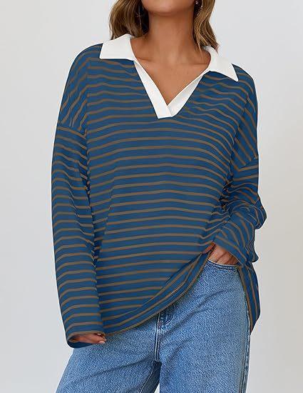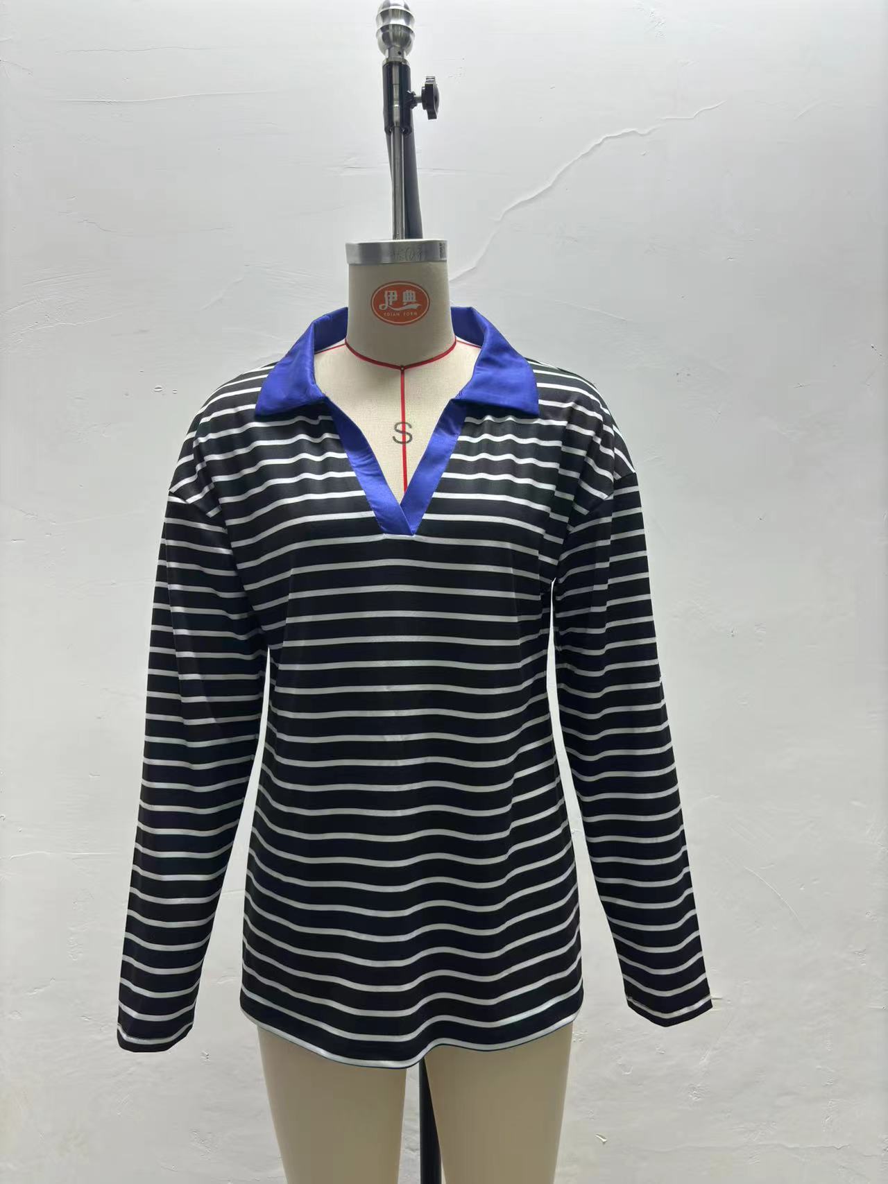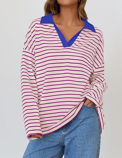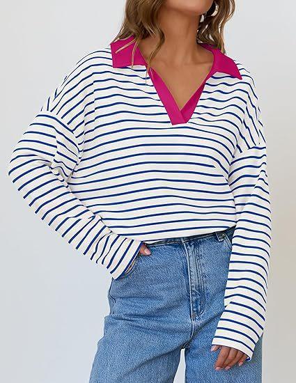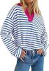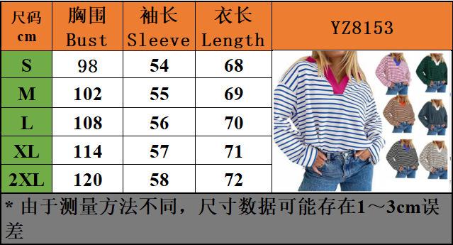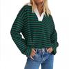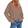 Suéter de manga larga holgado con cuello en V a rayas y contraste de color para otoño e invierno, comercio exterior transfronterizo de Amazon 2024 entre Europa y Estados Unidos